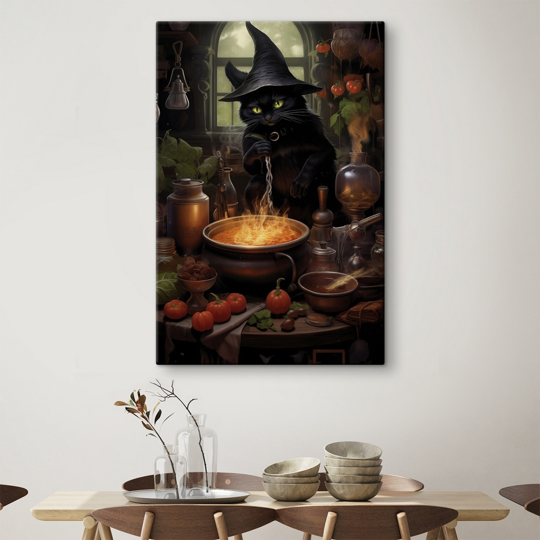 Préparez-vous à pimenter votre espace avec cette impression sur toile excentrique représentant un chat coiffé d’un chapeau de sorcier, remuant une marmite mystique de bonnes choses bouillonnantes ! C’est comme une tranche de fantaisie tout droit sortie des pages d’un livre de contes. Parfaite pour tous ceux qui aiment les décors uniques, cette œuvre d’art apporte de la chaleur et une touche d’humour, comme si ce félin espiègle vous invitait à vous joindre au plaisir de cuisiner. Imaginez-la dans une cuisine confortable ou un coin ludique ; elle ne manquera pas de susciter des conversations. Que vous soyez un amoureux des chats ou que vous appréciiez simplement l’art intelligent, cette pièce ne manquera pas de vous faire sourire à chaque fois que vous passerez à côté d’elle. C’est le genre de charme qui transforme un mur ordinaire en quelque chose de magique !