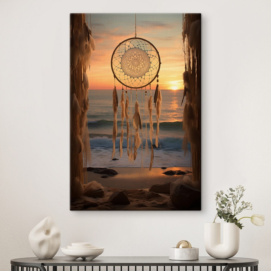 Respirez la magie de la mer avec ce superbe “imprimé sur toile Attrape-rêves depuis l’embrasure d’une porte”. Imaginez-vous dans votre salon, cette toile accrochée fièrement au-dessus du canapé, son délicat attrape-rêve encadré par un coucher de soleil de rêve sur l’océan. Il murmure des histoires de vagues douces et de brises légères, invitant au calme et à l’aventure à la fois. Les teintes pastel réchauffent n’importe quel espace, transformant un simple mur en un portail vers la sérénité. Ce n’est pas seulement de l’art, c’est un rappel quotidien à poursuivre vos rêves et à les laisser flotter comme des nuages à l’horizon. Parfait pour les amoureux de la plage ou pour tous ceux qui cherchent à ajouter une touche de joie à leur maison. Qui ne voudrait pas se sentir à deux pas du paradis ?