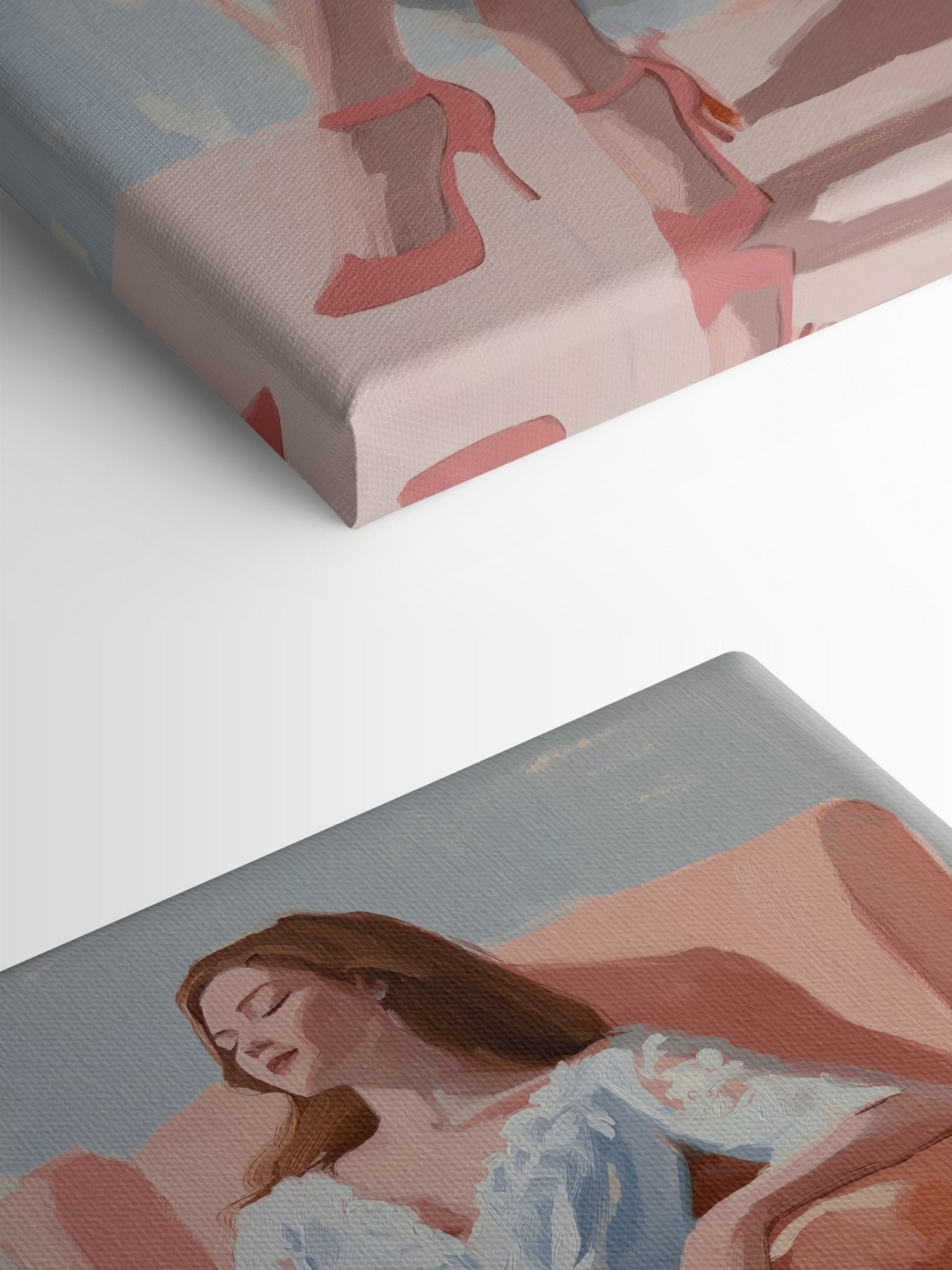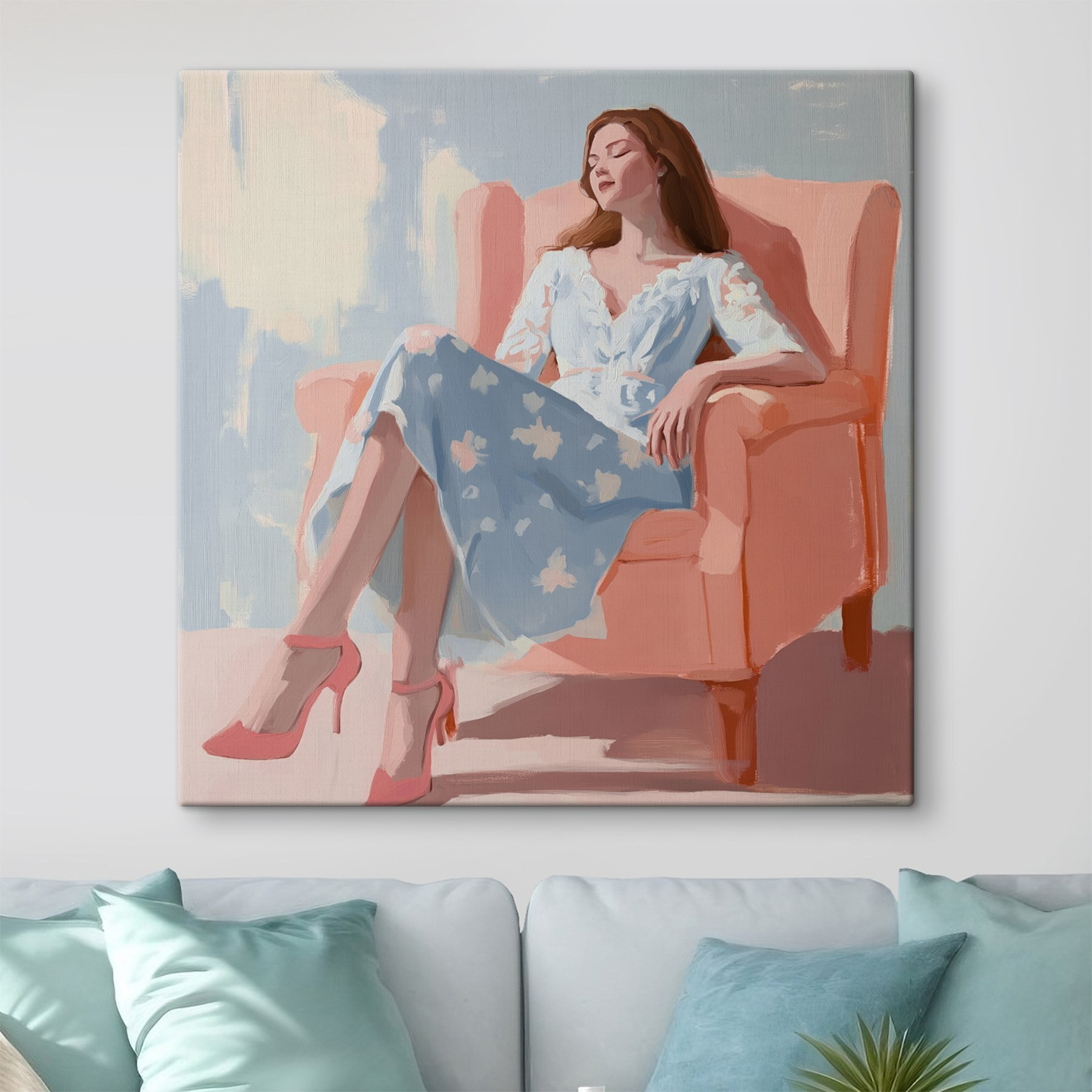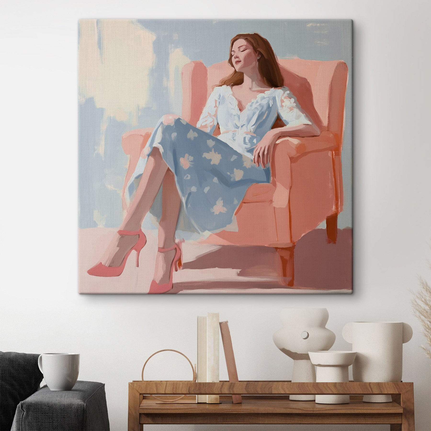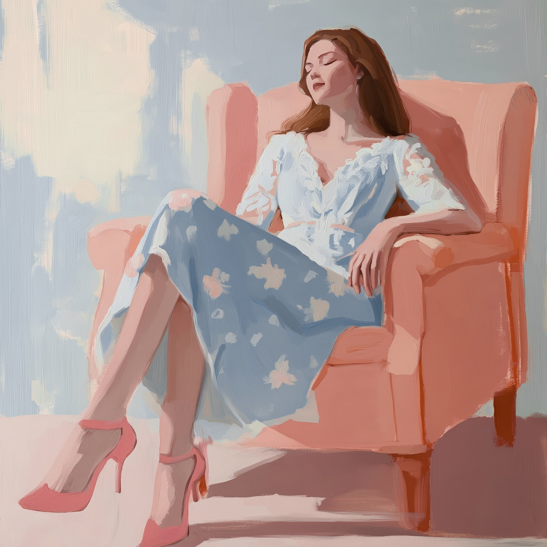 Imaginez cette toile : une femme se prélassant dans un fauteuil, l’élégance à l’état pur avec un soupçon de rêverie. Les couleurs pastel se mélangent doucement, créant un sentiment de calme qui donne envie de se blottir dans un bon livre. Parfait pour un coin tranquille ou un sanctuaire de chambre à coucher, il chuchote la sérénité avec un clin d’œil de sophistication. Vous vous surprendrez peut-être à la regarder, perdu dans vos pensées, à vous demander ce qu’elle pense ou à réfléchir à vos projets de dîner. C’est un art qui ajoute une touche de charme et d’intrigue à n’importe quelle pièce.
