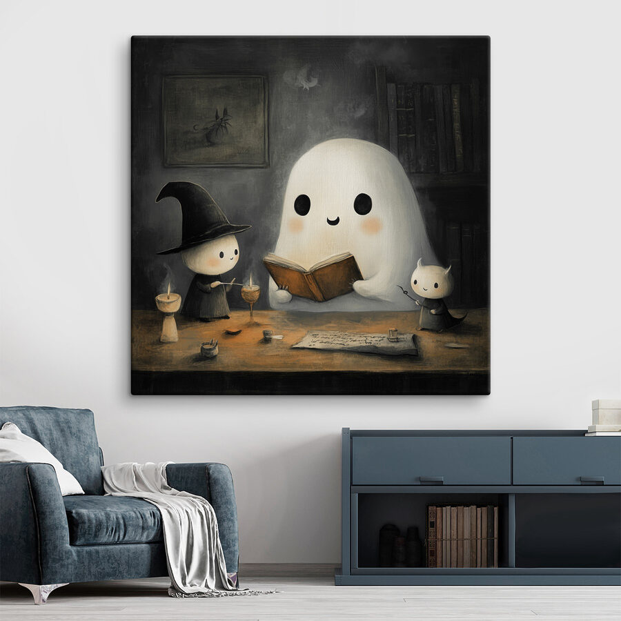 Vous recherchez un peu de charme avec une touche de fantaisie ? Cette délicieuse impression sur toile, “Fantôme lisant un livre avec deux petits personnages”, pourrait bien être votre tasse de thé. Imaginez une pièce douillette, faiblement éclairée, où un sympathique fantôme est profondément absorbé par un livre, en compagnie de deux petits compagnons. C’est comme plonger dans une histoire à dormir debout, pleine de magie et d’émerveillement. Parfait pour une chambre d’enfant ou un coin lecture où l’imagination peut s’exprimer librement. Imaginez les rires et les questions curieuses de vos invités. Il apporte une ambiance enchanteresse à n’importe quel espace, et il est impossible de ne pas sourire.