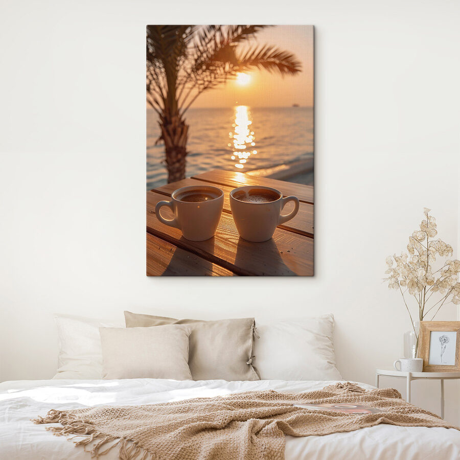 Imaginez que vous vous réveillez avec la douce lueur du lever de soleil sur l’océan et deux tasses de café fumantes qui n’attendent que d’être dégustées. Cette impression sur toile capture ce moment parfait de tranquillité, où le temps semble ralentir. C’est comme si vous aviez des mini-vacances sur votre mur, invitant à des discussions tranquilles ou à des rituels matinaux apaisants. Les doux reflets sur l’eau ajoutent une touche de rêve, rendant tout espace confortable et accueillant. Parfait pour un amateur de café ou toute personne souhaitant une touche de sérénité à la maison. Qui ne voudrait pas s’attarder dans cette scène un peu plus longtemps ?