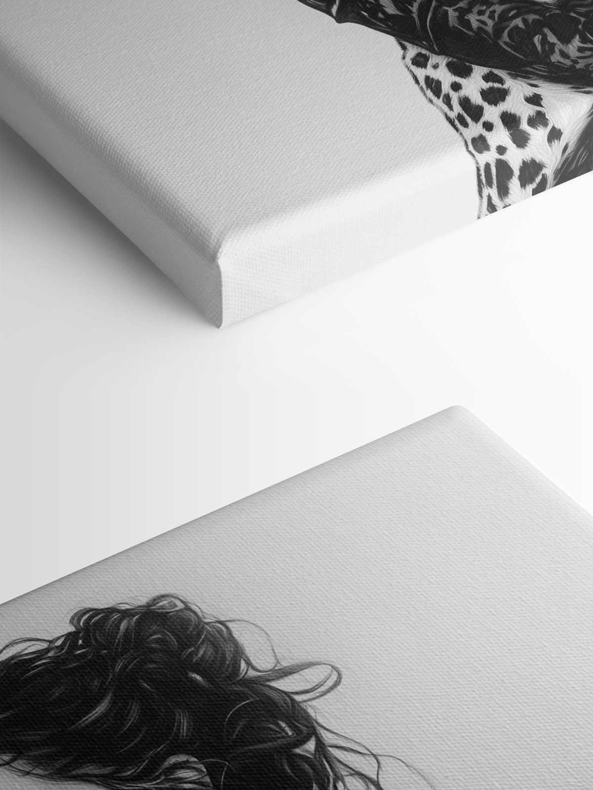 Voici l’étonnante impression sur toile “Woman Hugging a Leopard”, où la beauté se mêle à la férocité. Imaginez cette œuvre saisissante dans un coin confortable de votre maison. Le contraste dynamique entre le noir et le blanc attire le regard, créant une atmosphère à la fois dramatique et accueillante. C’est comme un murmure d’aventure sauvage associé à une connexion émotionnelle profonde.