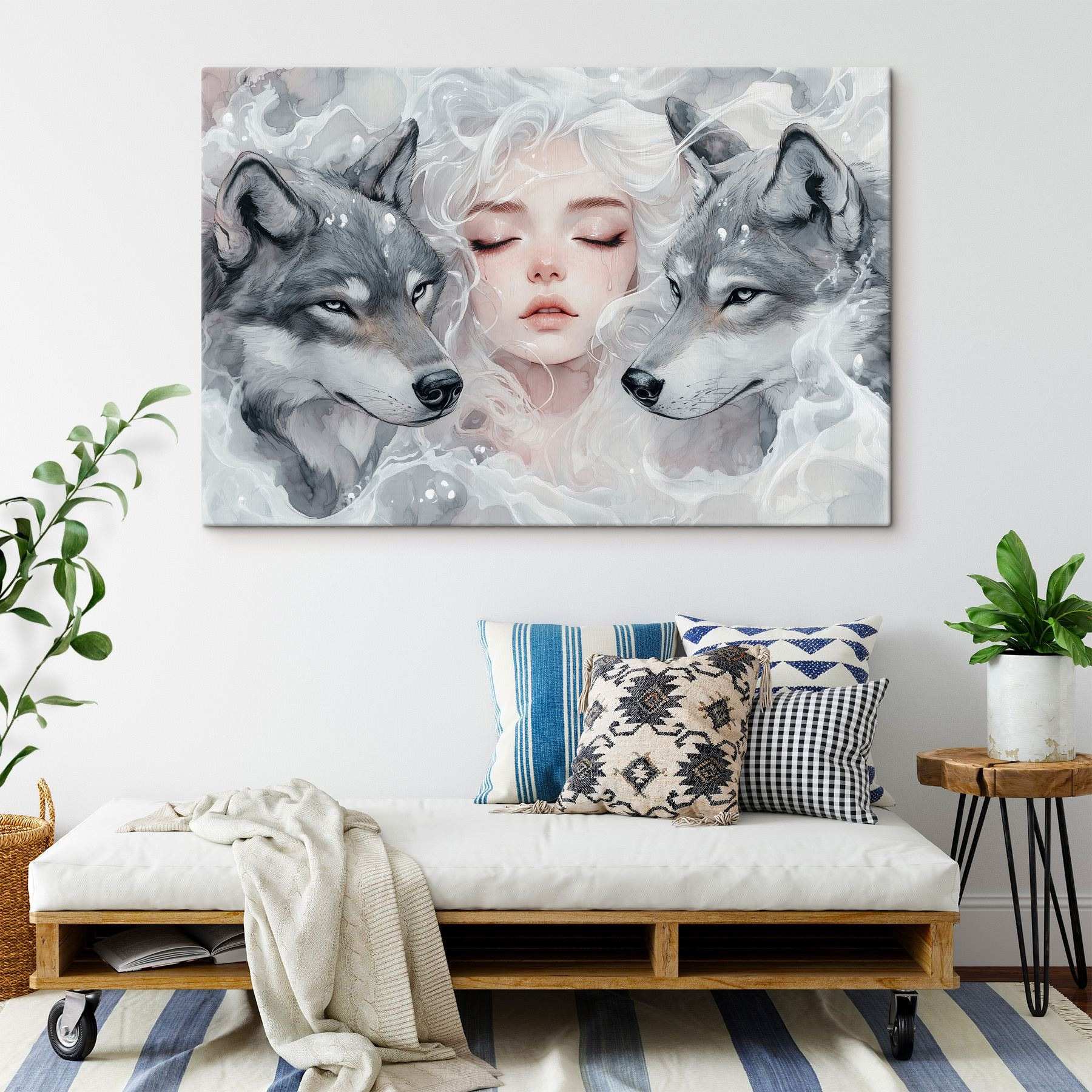 Plongez dans un monde fantaisiste avec cette impression sur toile représentant une femme sereine aux cheveux blancs flottants et deux loups vigilants. Sérieusement, c’est vraiment saisissant ! Imaginez que vous l’accrochiez, c’est comme une bouffée d’air frais sur votre mur. Les loups, avec leurs yeux perçants, ajoutent une touche de mystère, tandis que les couleurs douces créent une ambiance apaisante. Parfait pour un coin lecture confortable ou pour ce mur vide que vous regardez fixement. C’est un peu comme si vous invitiez la nature à l’intérieur, mais sans les bottes boueuses. Chaque coup d’œil permet de s’évader un peu de l’agitation quotidienne. Faites-lui confiance pour susciter des conversations et peut-être même un peu de rêverie. Parfait pour tous ceux qui apprécient l’art qui raconte une histoire sans dire un mot.