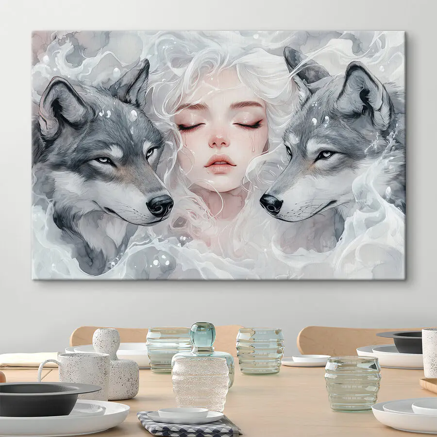 Plongez dans un monde fantaisiste avec cette impression sur toile représentant une femme sereine aux cheveux blancs flottants et deux loups vigilants. Sérieusement, c’est vraiment saisissant ! Imaginez que vous l’accrochiez, c’est comme une bouffée d’air frais sur votre mur. Les loups, avec leurs yeux perçants, ajoutent une touche de mystère, tandis que les couleurs douces créent une ambiance apaisante. Parfait pour un coin lecture confortable ou pour ce mur vide que vous regardez fixement. C’est un peu comme si vous invitiez la nature à l’intérieur, mais sans les bottes boueuses. Chaque coup d’œil permet de s’évader un peu de l’agitation quotidienne. Faites-lui confiance pour susciter des conversations et peut-être même un peu de rêverie. Parfait pour tous ceux qui apprécient l’art qui raconte une histoire sans dire un mot.