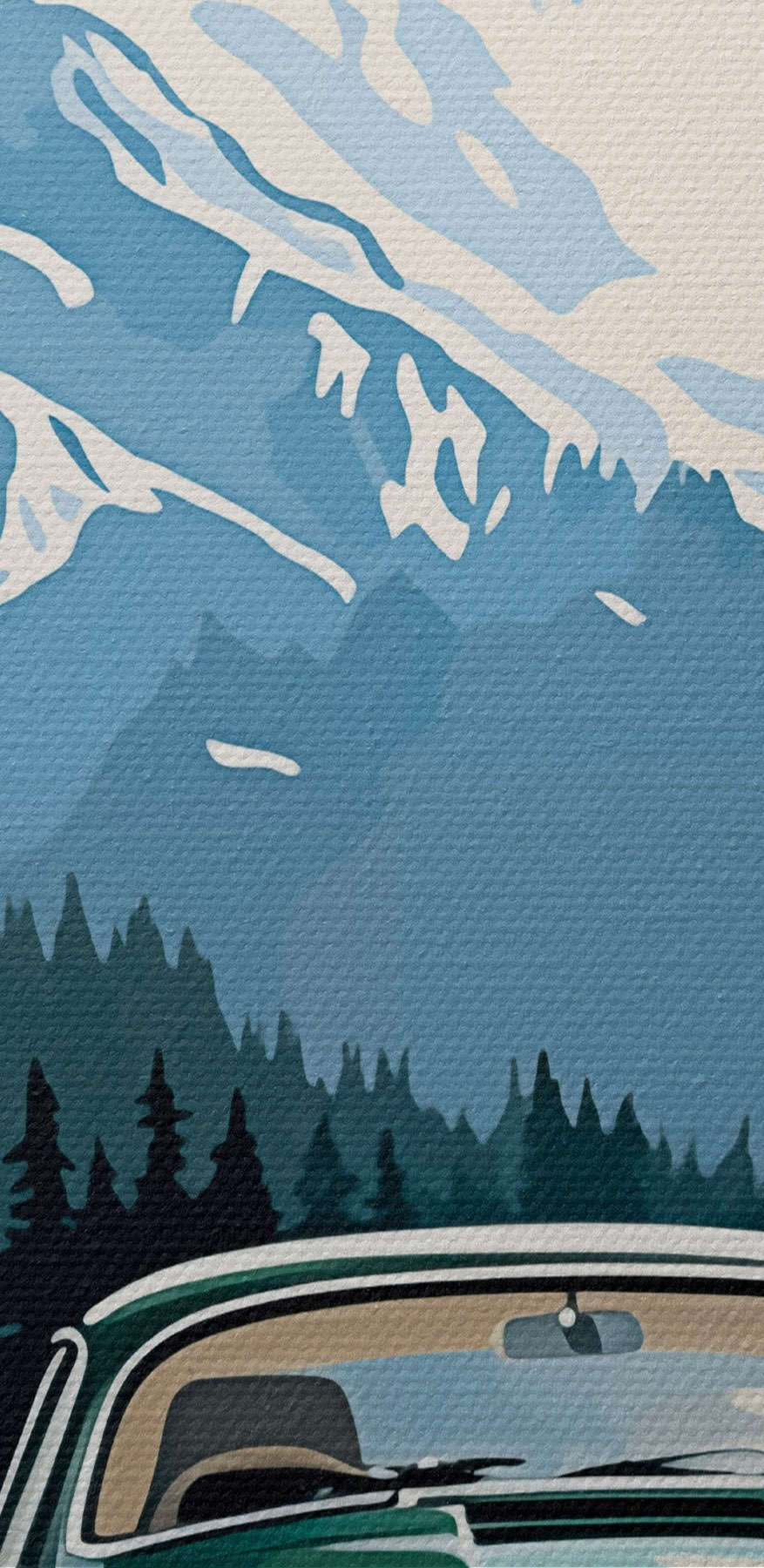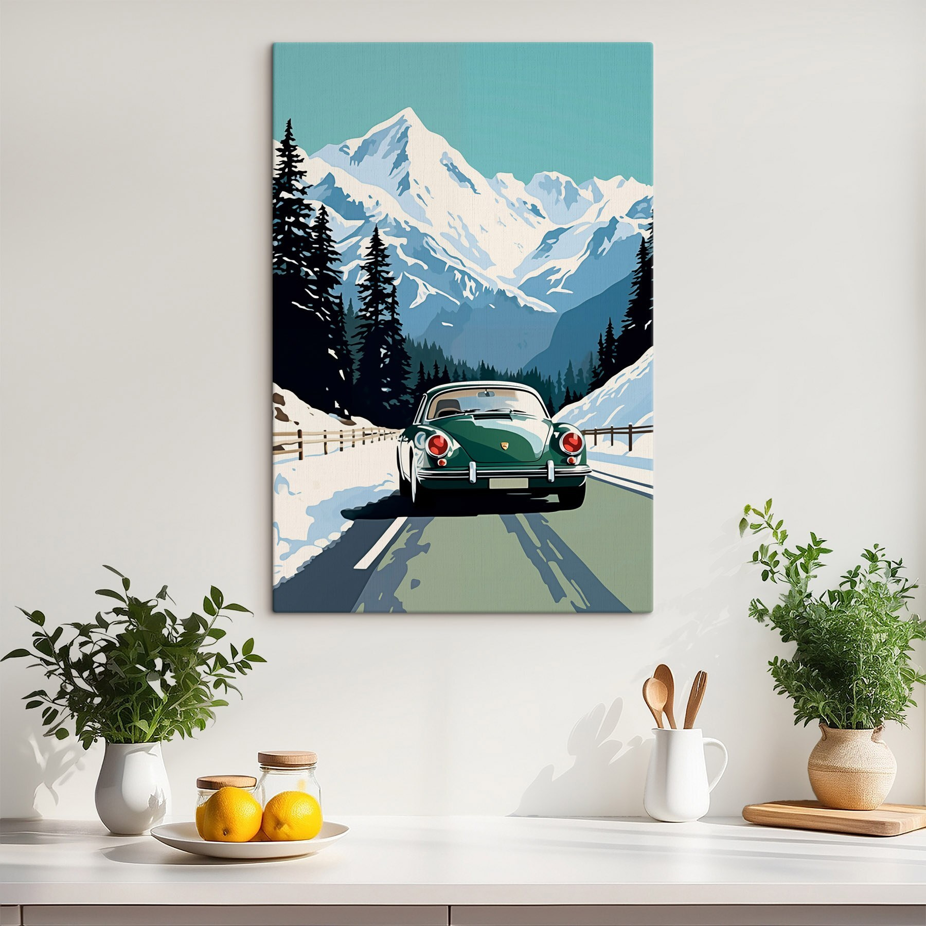Imaginez que vous roulez sur une route enneigée, flanquée de pins imposants et de montagnes majestueuses. Cette impression sur toile capture parfaitement cette escapade de rêve : une voiture emblématique glissant dans un pays de merveilles hivernales. C’est comme une bouffée d’air frais sur vos murs, invitant à l’aventure et à la nostalgie. Imaginez-la dans un salon confortable ou un couloir accueillant, suscitant des rêves de voyages en voiture et de chocolat chaud. Les amis s’arrêteront et diront : “Wow, c’est cool !”. Les couleurs sont éclatantes, mais il y a une douceur qui convient parfaitement, rendant n’importe quel espace un peu plus chaleureux. Parfait pour les amoureux de la nature ou ceux qui ont un penchant pour la route. Ce n’est pas seulement de l’art, c’est votre ticket pour l’errance, un regard à la fois.