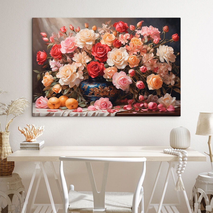 Apportez une touche vibrante à n’importe quelle pièce avec l’étonnante “Toile imprimée Vase de fleurs et de fruits”. Cette œuvre capture la beauté des fleurs et des fruits d’une manière si vivante qu’elle donne l’impression d’un mini jardin sur votre mur. Imaginez que vous vous réveillez chaque matin devant ce joyeux tableau – c’est un régal pour les yeux ! Avec ses couleurs chaudes et ses détails accueillants, il transforme les murs vides en conversations animées. Pensez à recevoir des amis ; ils admireront l’œuvre et tout d’un coup, tout le monde se transformera en critique de galerie ! Il est parfait pour égayer un espace de vie ou même un coin douillet. Vous pourriez même vous surprendre à rêver d’un après-midi ensoleillé, entouré par la nature. Un petit avertissement : il peut inspirer des projets de pique-nique spontanés !