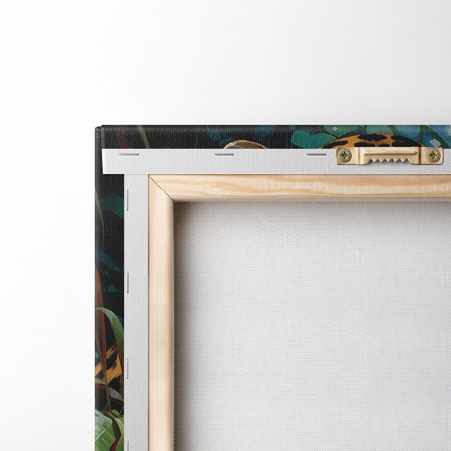 Avec une jungle vibrante en toile de fond, les verts et les rouges détaillés insufflent de la vie dans n’importe quel espace, donnant l’impression d’un mini safari à la maison. Parfait pour les amoureux des animaux et tous ceux qui souhaitent ajouter une touche d’aventure à leur décoration. Qu’il s’agisse du salon, du bureau ou d’un coin qui ne demande qu’à être mis en valeur, cette toile d’art apporte une touche d’exotisme. Soyez prêt à recevoir des compliments ; ce félin majestueux est la star du spectacle !