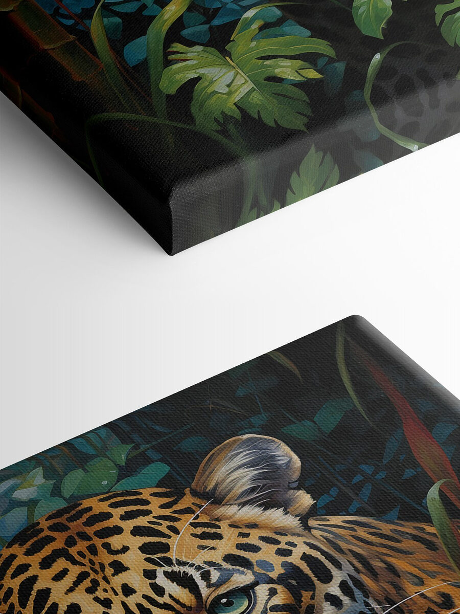 Entrez dans la nature avec le “Tableaux Leopard in the Jungle” (Impressions sur toile – Léopard dans la jungle) ! Imaginez cette superbe œuvre sur votre mur – c’est comme si vous étiez aux premières loges pour assister à un drame de la nature. Ces yeux verts perçants ? Ils vous suivent pratiquement partout dans la pièce, vous mettant au défi d’oublier à quel point votre canapé est douillet.