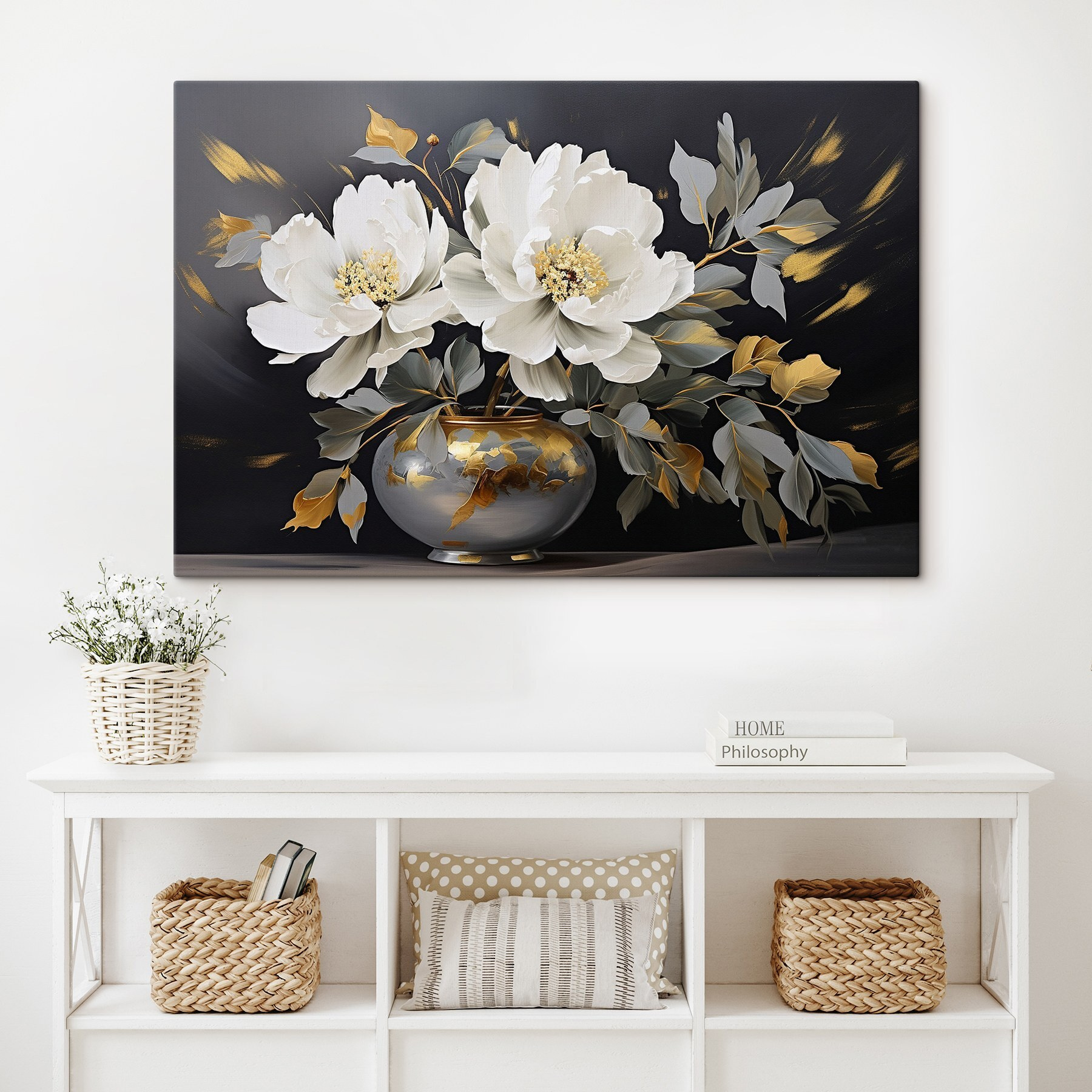 Transformez votre espace avec cette magnifique impression sur toile de fleurs dans un vase. Imaginez que vous vous réveillez chaque jour avec ces superbes fleurs, comme si vous aviez un bouquet frais sans l’arrosage ni les soucis ! Les couleurs douces ressortent magnifiquement sur le fond sombre, créant un petit coin de joie dans n’importe quelle pièce. Il est parfait au-dessus d’un coin lecture confortable ou comme élément de décoration dans le salon. C’est comme un doux câlin pour vos murs, ajoutant de la chaleur et une touche de nature qui fait du bien. Cet art rend chaque regard un peu plus lumineux – qui n’en voudrait pas ?