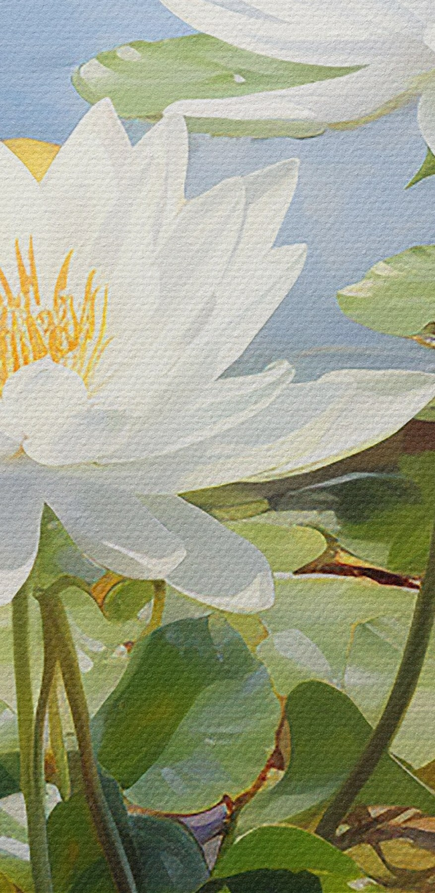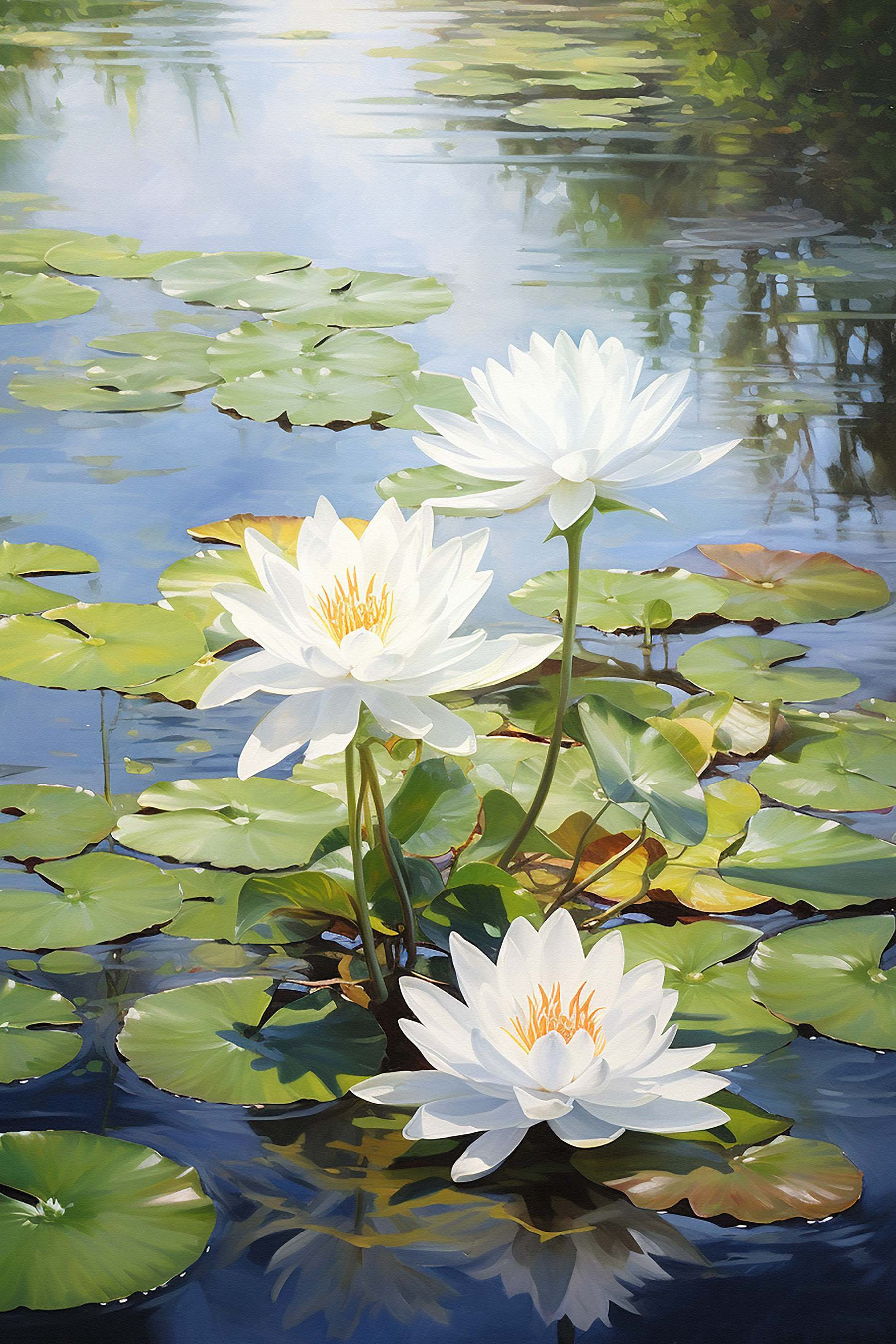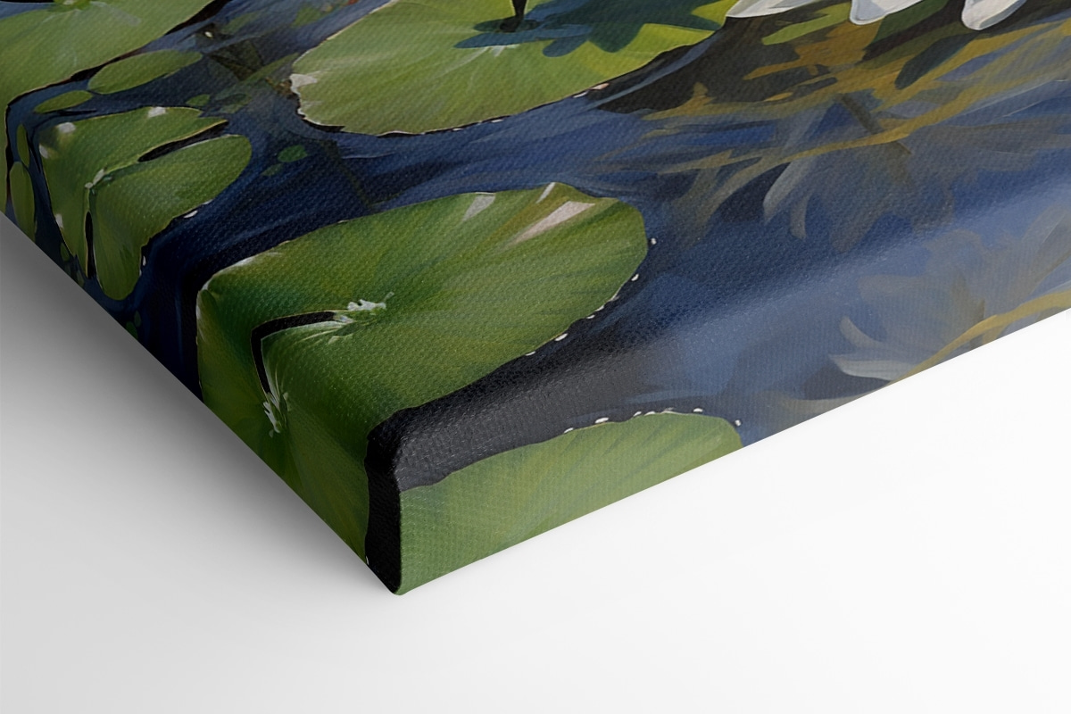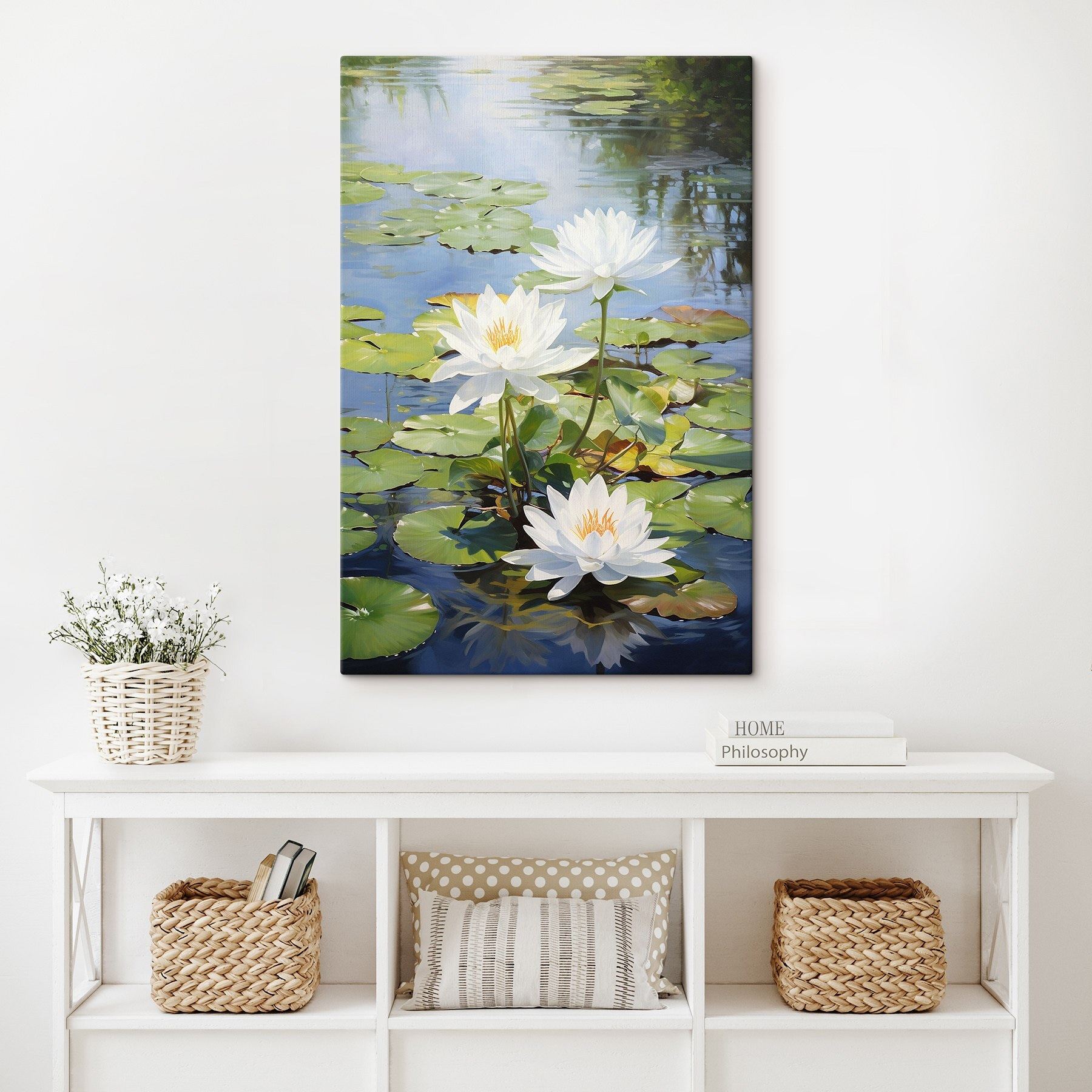 Imaginez que vous entrez dans une pièce et que vous êtes accueilli par un étang serein rempli de gracieuses fleurs blanches – ça fait rêver, non ? C’est exactement ce qu’illustre cette impression sur toile ! Avec ses délicates teintes d’aquarelle et ses reflets paisibles, elle apporte une tranche de nature dans votre maison. Elle est parfaite pour une entrée ou un coin lecture confortable où vous pouvez vous détendre. Imaginez-vous en train de vous installer dans votre fauteuil préféré, une tasse de thé à la main, tandis que la douce élégance de ces fleurs murmure des pensées calmes dans l’air. C’est comme si vous vous offriez une petite escapade quotidienne. Sérieusement, qui n’en voudrait pas ?