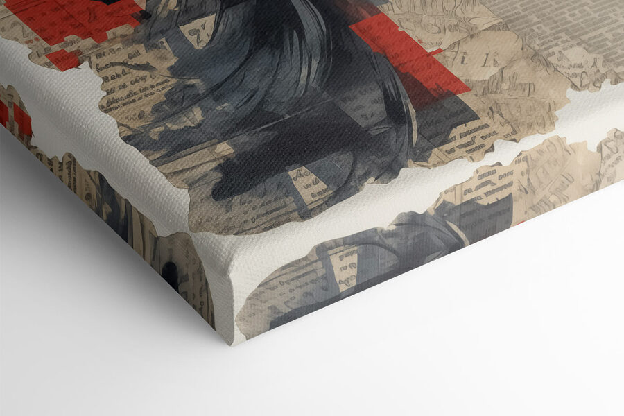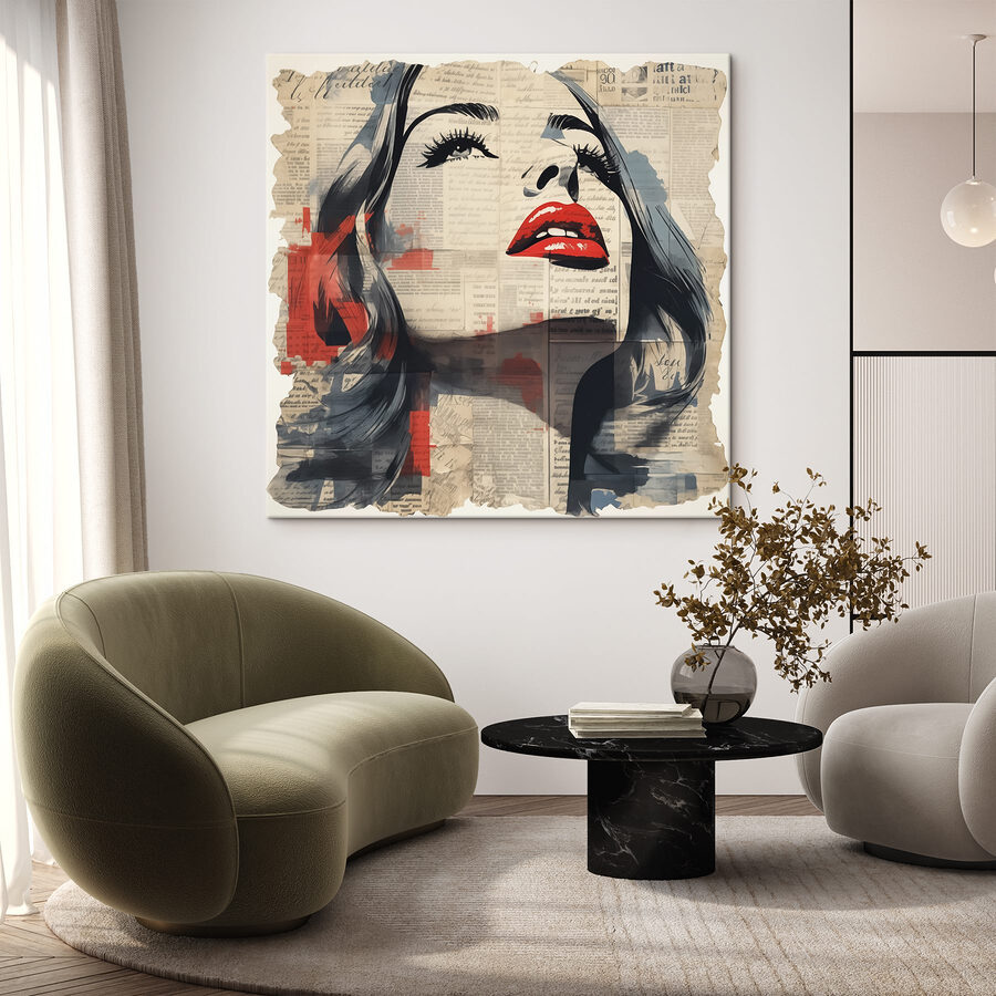 Transformez n’importe quelle pièce avec cette impressionnante impression sur toile intitulée “Visage de femme peint sur du papier journal”. Il s’agit d’une pièce remarquable qui attire immédiatement l’attention, alliant une beauté classique à l’ambiance branchée des pages vintage. Imaginez-la au-dessus d’un coin lecture confortable ou dans un couloir chic – elle suscite tout simplement des conversations. Les lèvres rouges audacieuses se détachent sur le fond doux et discret, donnant un goût de glamour tout en chuchotant des histoires d’autrefois.