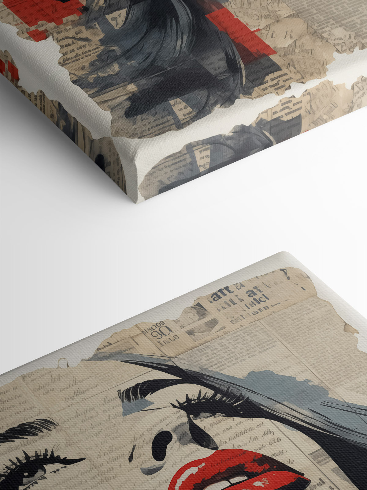 Transformez n’importe quelle pièce avec cette impressionnante impression sur toile intitulée “Visage de femme peint sur du papier journal”. Il s’agit d’une pièce remarquable qui attire immédiatement l’attention, alliant une beauté classique à l’ambiance branchée des pages vintage. Imaginez-la au-dessus d’un coin lecture confortable ou dans un couloir chic – elle suscite tout simplement des conversations. Les lèvres rouges audacieuses se détachent sur le fond doux et discret, donnant un goût de glamour tout en chuchotant des histoires d’autrefois.