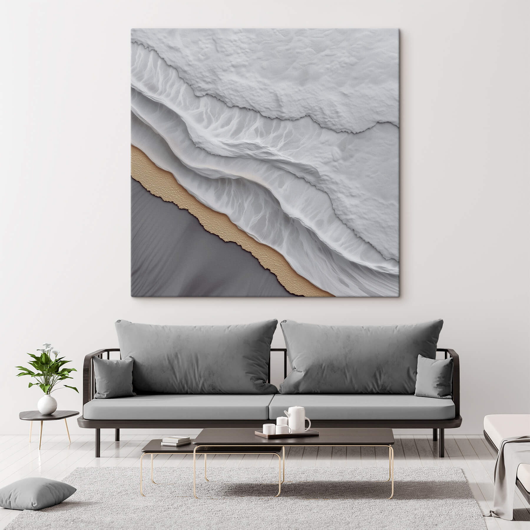 Imaginez une plage sereine, des vagues qui clapotent doucement sur le rivage, mais au lieu du soleil et du sable habituels, vous avez une ambiance de pays des merveilles hivernales. Cette impression sur toile intitulée “Neige sur une plage” capture magnifiquement la danse inhabituelle de la neige hivernale se mêlant aux rivages sablonneux. C’est comme si Mère Nature avait décidé d’organiser une fête sur la plage au milieu de l’hiver. Qui aurait cru que la neige pouvait être aussi accueillante ?