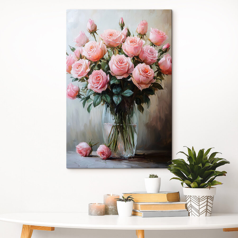 Illuminez n’importe quelle pièce avec cette superbe impression sur toile de roses roses dans un vase. C’est comme une petite bouffée de printemps, même au milieu de l’hiver ! Imaginez que vous passiez devant et que vous preniez une bouffée de bonheur floral – d’accord, ça ne sent peut-être pas, mais ça a l’air invitant. Les teintes roses douces et les verts luxuriants créent une ambiance apaisante, parfaite pour un coin lecture confortable ou une cuisine pleine d’entrain. De plus, c’est un excellent moyen d’engager la conversation – qui n’aime pas parler de fleurs ? Cette pièce évoque la chaleur, le charme et un soupçon de romantisme. Tous ceux qui la verront se sentiront un peu plus heureux, c’est garanti !