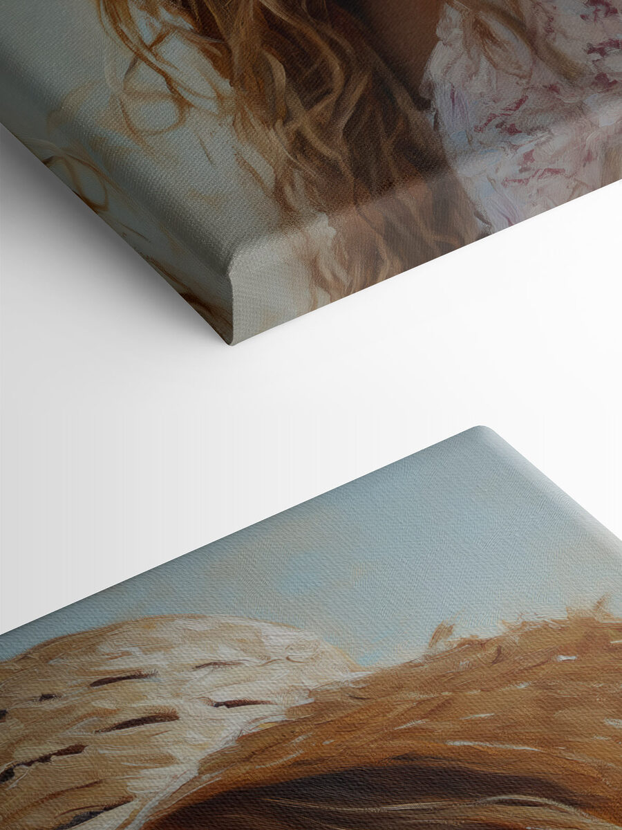 Entrez dans un monde de bonheur ensoleillé avec cette superbe impression sur toile. Représentant une femme sereine coiffée d’un chapeau de paille, cette œuvre évoque les journées d’été et les aventures insouciantes. Les couleurs douces et l’expression délicate invitent à la sérénité, ce qui en fait l’œuvre idéale pour égayer un coin douillet ou un mur d’exposition.