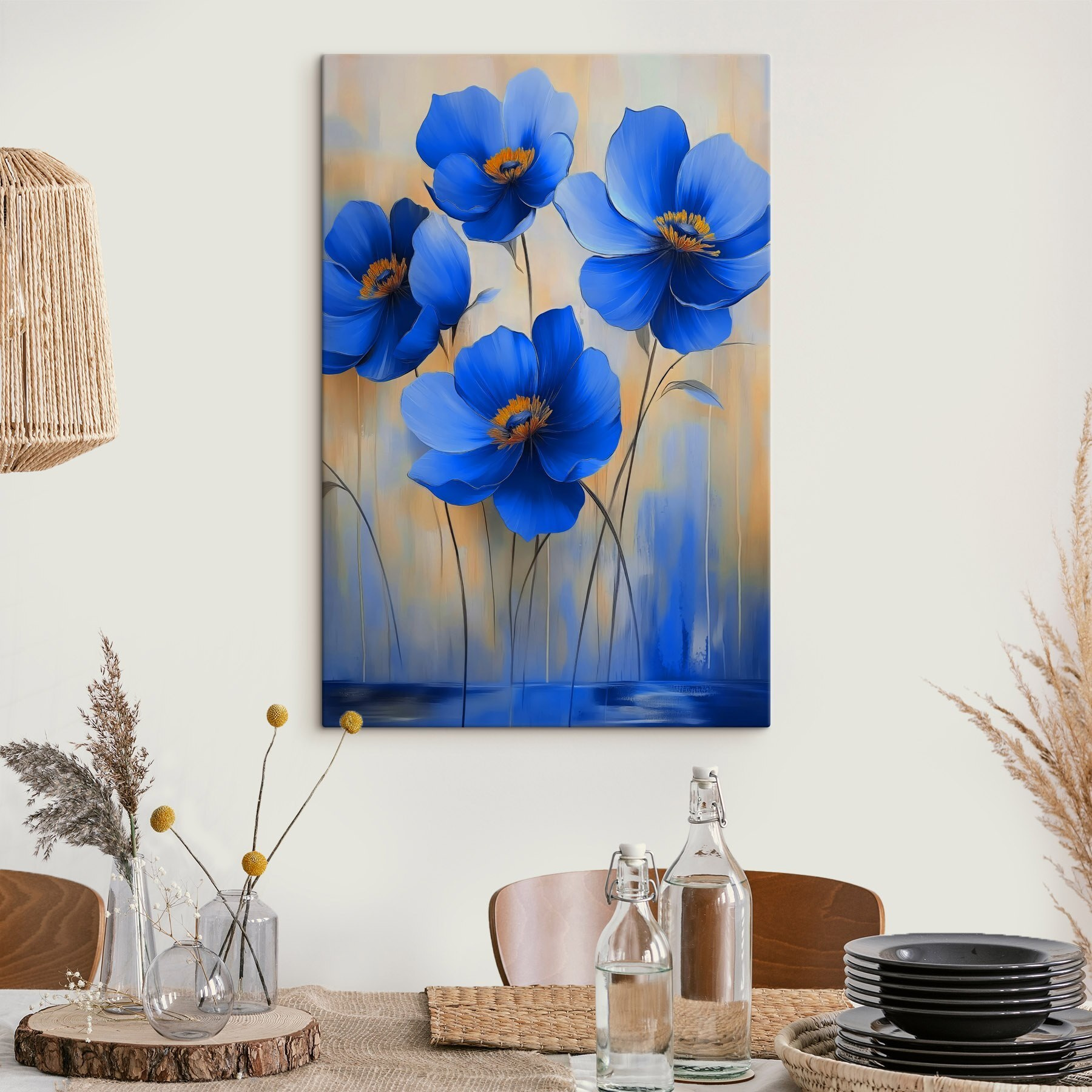 Imaginez que vous entrez dans une pièce où ces fleurs bleues audacieuses vous accueillent, avec des pétales peints dans des teintes vibrantes qui pourraient égayer même les jours les plus pluvieux. Cette impression sur toile n’est pas seulement de l’art ; c’est comme si vous apportiez un jardin de printemps frais à l’intérieur, sans les éternuements dus au pollen. Chaque fleur a sa propre personnalité, comme si elles discutaient dans un champ ensoleillé. Imaginez que vous recevez des amis : tout le monde ne peut s’empêcher d’être attiré par la beauté, ce qui déclenche des rires et des histoires. C’est un heureux mélange de nature et de couleur, qui transforme n’importe quel espace en un petit coin de paradis. Parfait pour les coins douillets ou ce mur qui a besoin d’un peu d’amour !