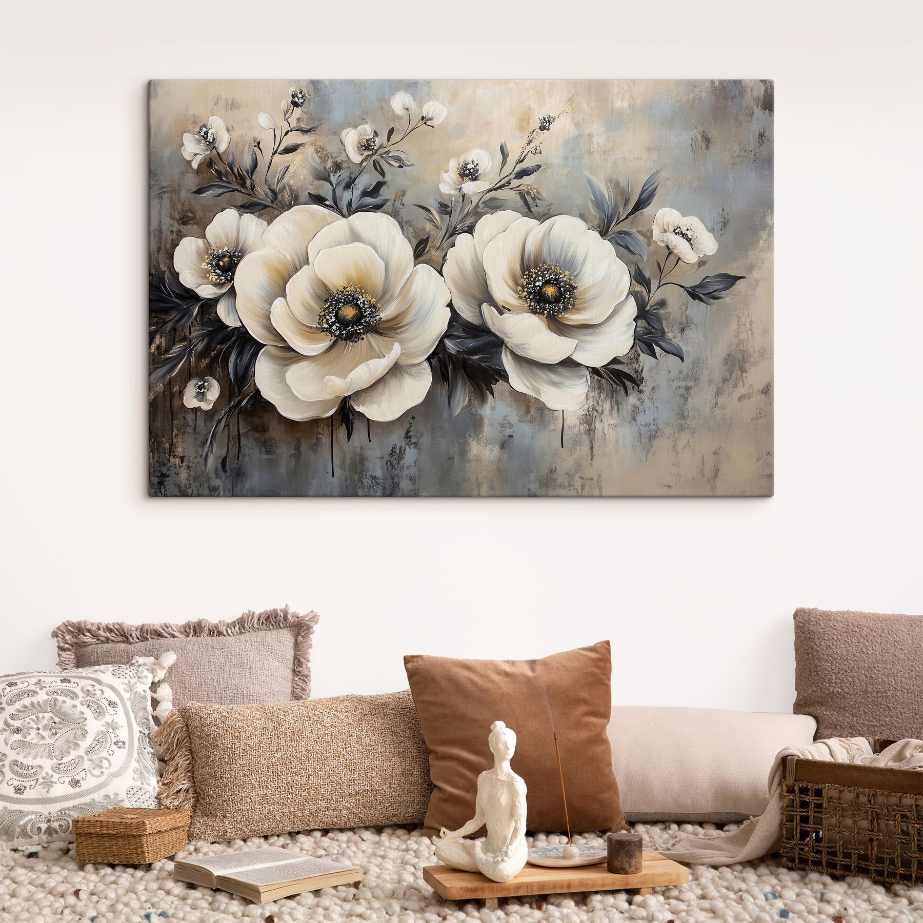 Transformez votre espace avec cette superbe toile imprimée de délicates fleurs blanches. Elle apporte une touche de nature à l’intérieur sans qu’il soit nécessaire d’avoir la main verte – c’est tout bénéfice ! Imaginez que vous entrez dans une pièce et que vous êtes accueilli par ces douces fleurs, qui murmurent doucement un sentiment de calme et de tranquillité. Chaque fleur semble raconter sa propre petite histoire, parfaite pour susciter des conversations lors de réunions chaleureuses. Les tons neutres se mélangent sans effort et s’adaptent à tous les styles de décoration. Que ce soit au-dessus du canapé ou dans un bureau à domicile, cette pièce est comme une bouffée d’air frais. N’oubliez pas de l’arroser de compliments !