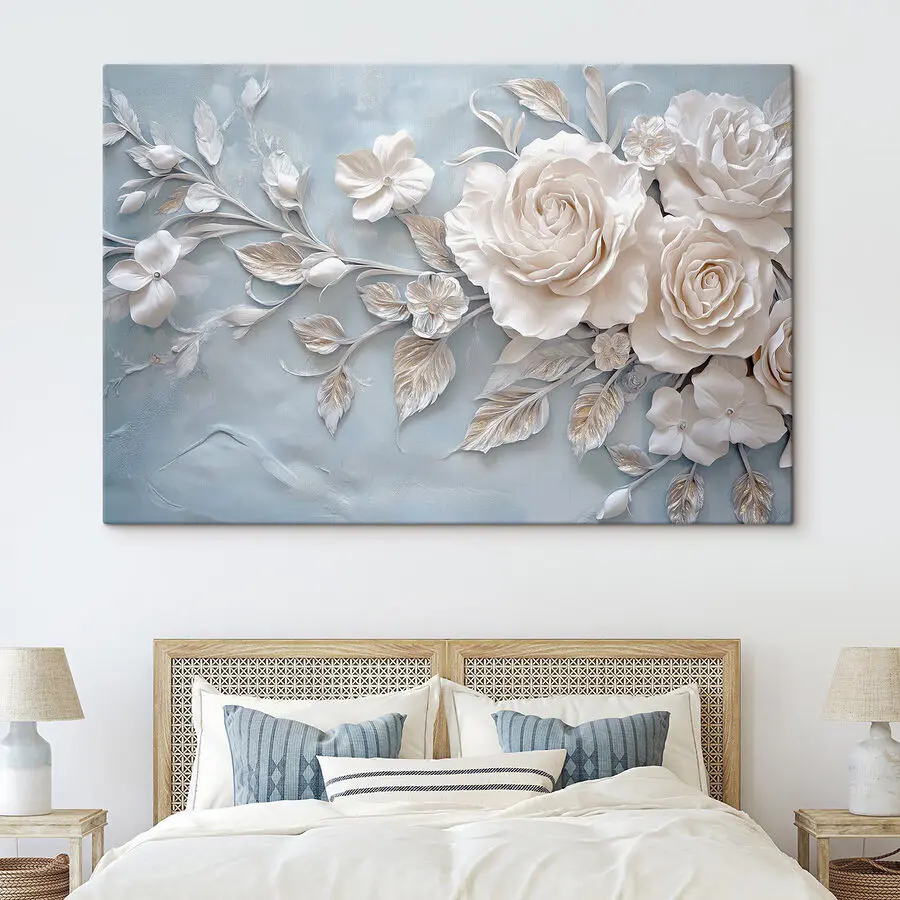 Transformez n’importe quelle pièce avec cette superbe impression sur toile, “Fleurs et feuilles blanches sur une surface bleue”. Imaginez un matin paisible où la lumière du soleil entre à flots, illuminant ces élégantes fleurs qui semblent danser sur le mur. Le fond bleu doux évoque des vibrations calmes, parfaites pour un coin lecture confortable ou une chambre à coucher sereine. C’est comme si vous apportiez une tranche de nature à l’intérieur, l’arrosoir en moins ! Une touche de sophistication, un soupçon de fantaisie, et c’est tellement accueillant. Vos amis pourraient bien vous féliciter pour votre goût exceptionnel ! Alors pourquoi attendre ? Laissez ces fleurs égayer votre espace et votre cœur.