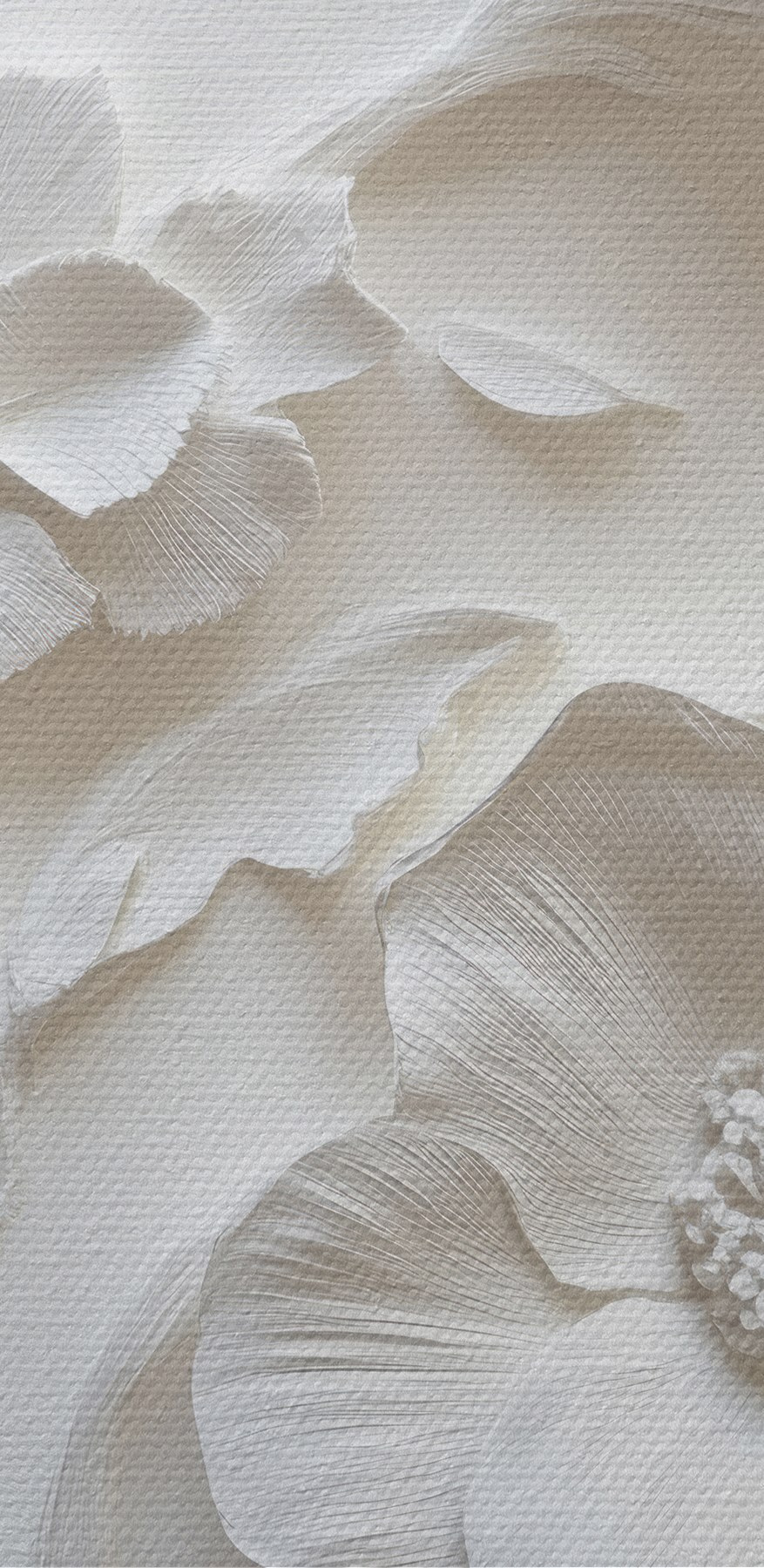 Le revêtement vinylique est une fine couche de PVC appliquée sur un support intissé. La présence de vinyle rend le papier peint résistant aux dommages, permet un nettoyage facile à l’aide d’une éponge humide et donne à la surface une texture gaufrée, ressemblant à un tissu de lin.