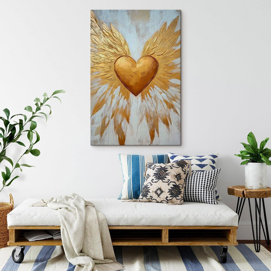 Transformez n’importe quel mur en un lieu d’évasion joyeuse grâce à cette impression sur toile représentant un cœur avec des ailes. Imaginez que vous entrez dans un espace qui vous semble instantanément plus chaleureux, comme si un câlin amical venait de se dérouler. Le cœur vibrant semble s’élever, invitant à des pensées d’amour, d’espoir et de fantaisie. Qu’il s’agisse d’égayer un coin lecture confortable ou de susciter une conversation dans un salon, cette pièce apporte une touche unique. Parfaite pour ceux qui croient en la magie d’un peu d’inspiration, elle murmure la joie et rappelle à chacun de garder le cœur léger et libre.