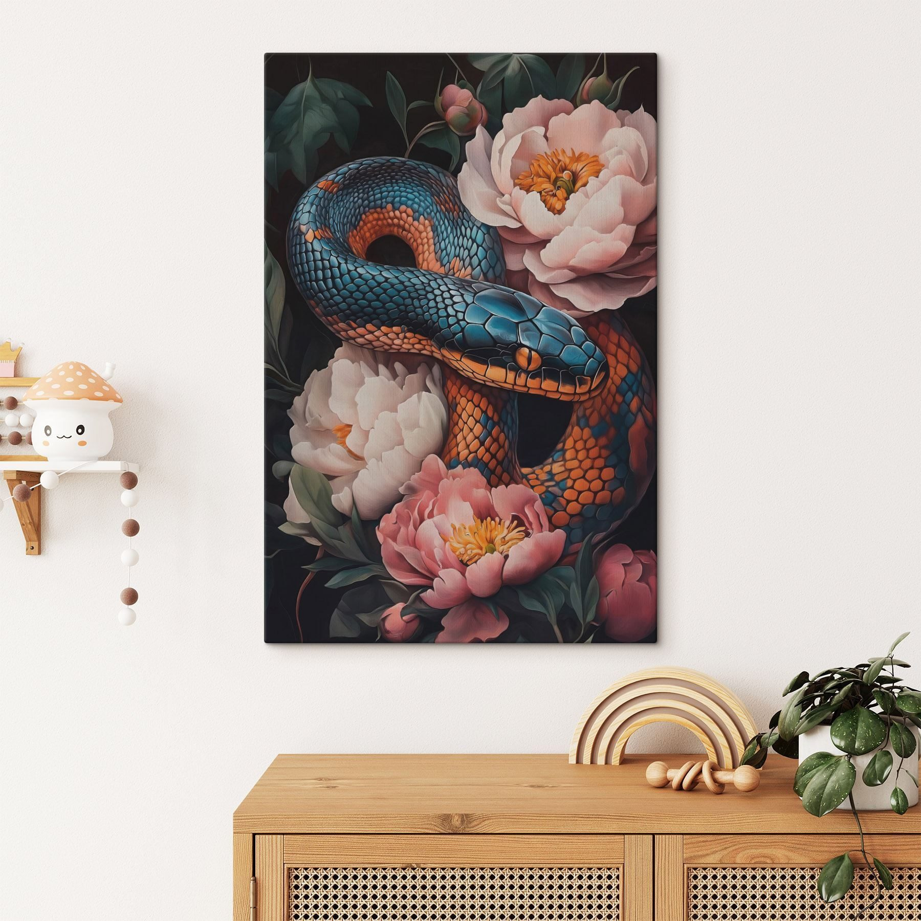 Voici l’impression sur toile “Serpent bleu et orange avec fleurs” – parfaite pour ceux qui apprécient une touche sauvage dans leur décoration d’intérieur ! Cette pièce étonnante représente un serpent hypnotisant, entouré de fleurs luxuriantes, ajoutant une touche de charme naturel à n’importe quel espace. C’est comme si le serpent avait décidé de s’incruster dans une fête florale, n’est-ce pas ?
