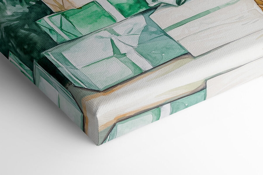 Imaginez que vous entrez dans une pièce qui sent le pin et les biscuits, et voilà qu’apparaît une charmante impression sur toile représentant une aquarelle fantaisiste de cadeaux nichés sous un sapin. Chaque cadeau, emballé dans des teintes douces, crée une ambiance chaleureuse, suscitant joie et nostalgie. C’est comme le moment où l’on s’apprête à déballer une surprise. Accrochez-le dans un salon ou un bureau, et l’ambiance s’en trouvera instantanément améliorée. Les amis pourront se prélasser sur le canapé en l’admirant, tout en partageant des rires et des histoires. Cette pièce ressemble à une étreinte chaleureuse par temps froid. Elle est parfaite pour donner un air plus festif et plus accueillant à n’importe quel espace.