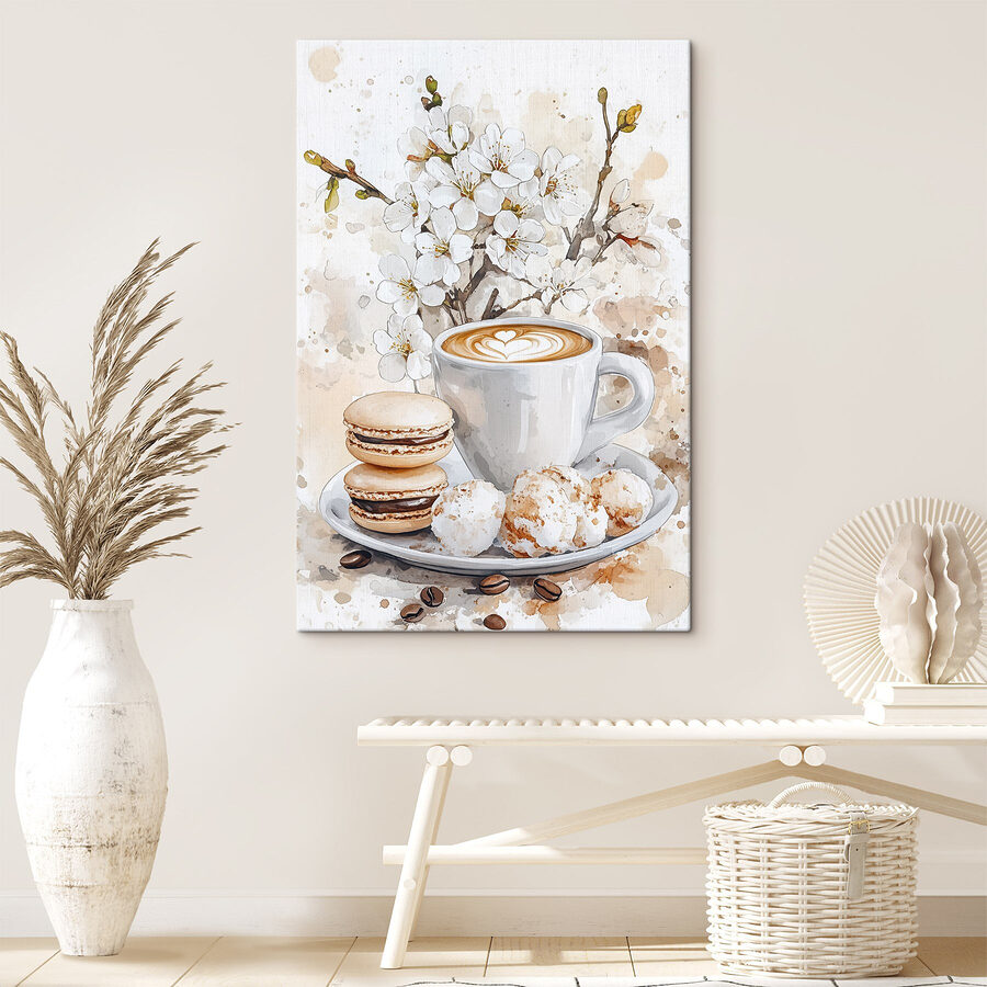 Imaginez-vous en train de vous installer dans votre fauteuil préféré avec une tasse de café et une assiette de biscuits – le bonheur à l’état pur, n’est-ce pas ? Cette délicieuse impression sur toile capture parfaitement ce doux moment. Avec un magnifique café au lait orné d’un motif en forme de cœur et de délicieuses friandises, elle ajoute une touche chaleureuse à n’importe quel espace. Les douces fleurs en arrière-plan invitent au printemps, quelle que soit la saison. Accrochez-le dans la cuisine, et il pourrait bien inspirer quelques aventures de pâtisserie, ou placez-le dans un café pour une atmosphère accueillante. C’est comme si vous aviez une petite tranche de confort sur votre mur – chaque coup d’œil à cette pièce apporte un sourire et peut-être une petite envie de dessert.