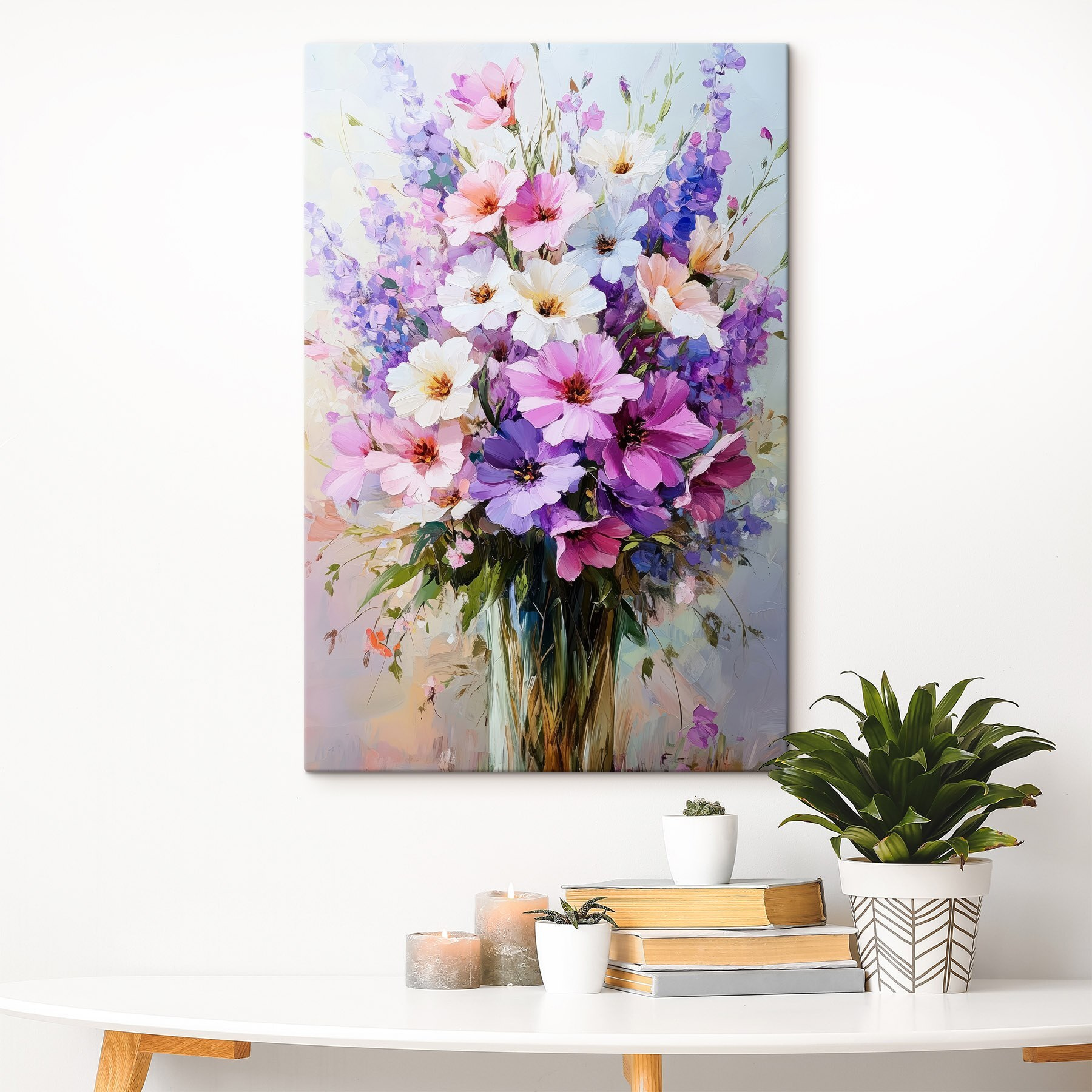 Illuminez n’importe quelle pièce avec cette superbe impression sur toile de fleurs dans un vase. C’est comme si vous aviez un mini jardin accroché à votre mur, sans avoir à l’arroser ! Les éclats de rose, de violet et de blanc créent une ambiance joyeuse qui peut instantanément remonter le moral. Imaginez : un coin café confortable, baigné par la lumière du soleil, et cette magnifique œuvre d’art qui ajoute une touche de nature. Les invités vous complimenteront tout en se demandant comment vous arrivez à garder votre maison aussi fraîche et accueillante. C’est une petite touche de joie parfaite pour tout amateur de fleurs ou de nature !