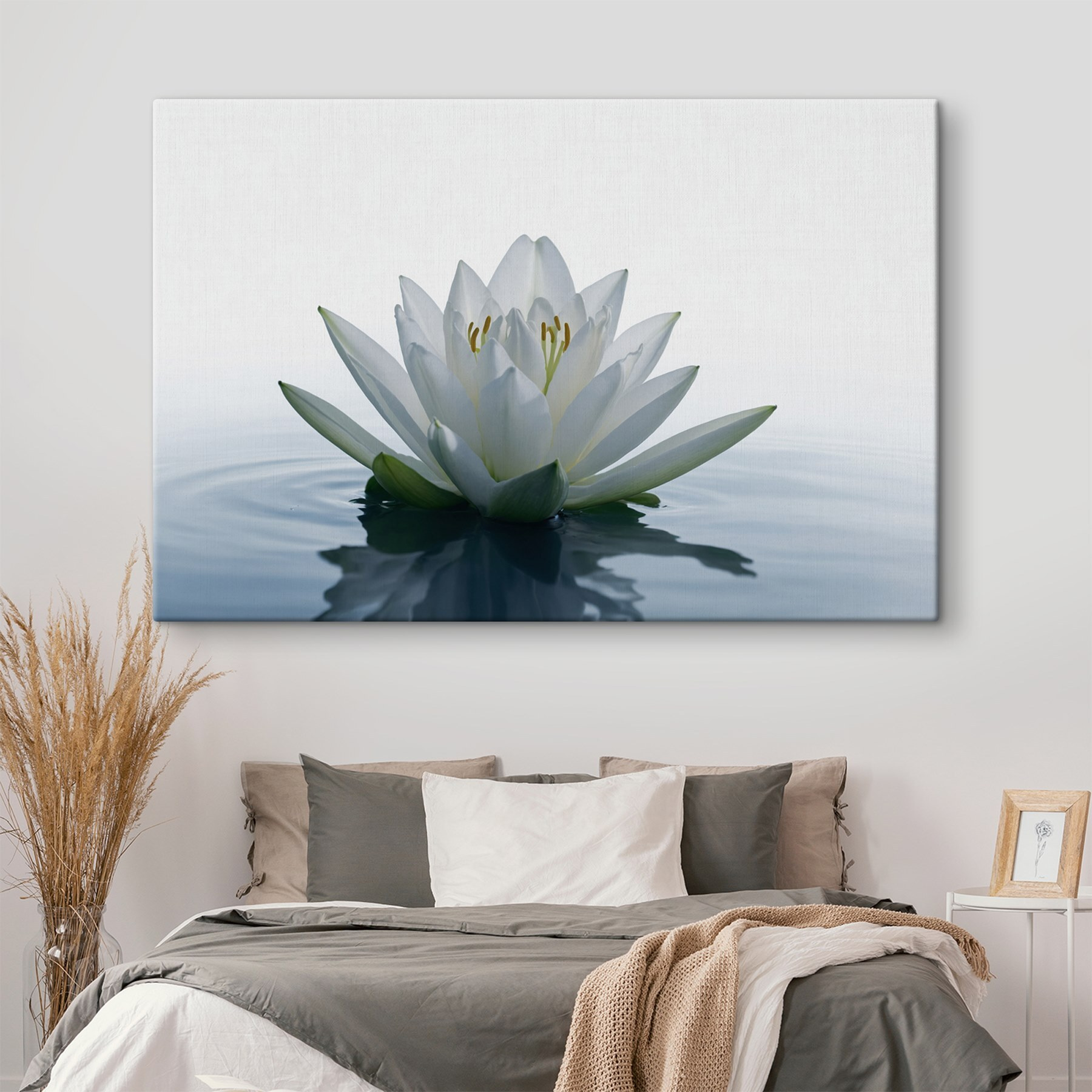 Cette “Impression sur toile Fleur blanche dans l’eau” est une véritable bouffée d’air frais pour votre espace. Imaginez que vous pénétrez dans une oasis de calme à chaque fois que vous passez devant. Les délicats pétales blancs flottant doucement sur cette eau tranquille donnent l’impression d’un matin paisible dans un jardin caché. Parfait pour les moments où le chaos de la vie devient un peu trop bruyant, n’est-ce pas ? Accrochez-le dans votre salon ou même dans la salle de bain pour une petite ambiance de spa. Ce n’est pas seulement un décor, c’est aussi un petit rappel pour faire une pause, respirer et s’imprégner de la beauté environnante. Croyez-moi, cela illuminera instantanément votre journée !