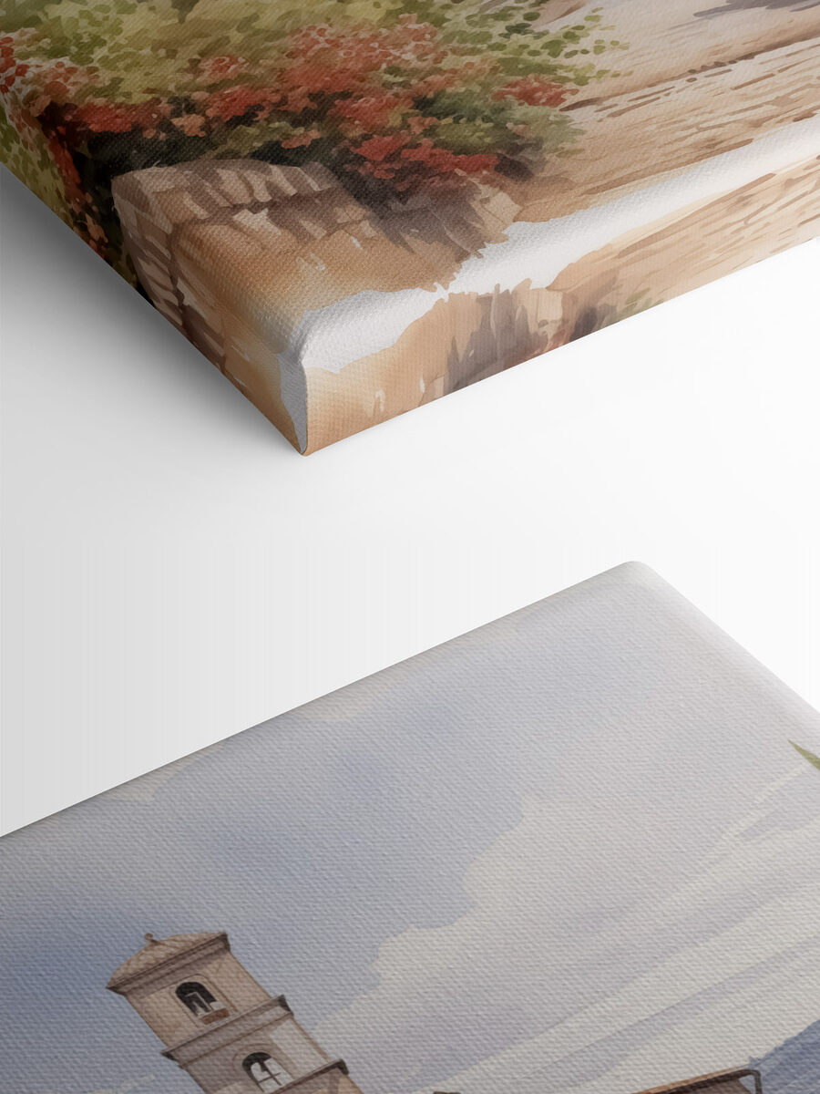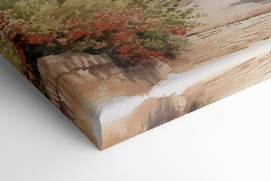 Transformez n’importe quelle pièce en une escapade douillette avec cette charmante impression sur toile d’un village en aquarelle. C’est comme si vous invitiez une brise chaude et le parfum des fleurs à l’intérieur de votre maison. Imaginez : vous vous blottissez dans un livre, la lumière du soleil illuminant doucement les couleurs des maisons pittoresques et de la verdure luxuriante, tandis qu’une tasse de thé vaporise à côté de vous. Cette impression évoque des après-midi de farniente et des promenades tranquilles sur des chemins pavés. Parfaite pour tous ceux qui souhaitent une touche de sérénité – accrochez-la et laissez libre cours à vos rêveries. Ce n’est pas seulement de l’art, c’est une invitation à la flânerie sans quitter le canapé !