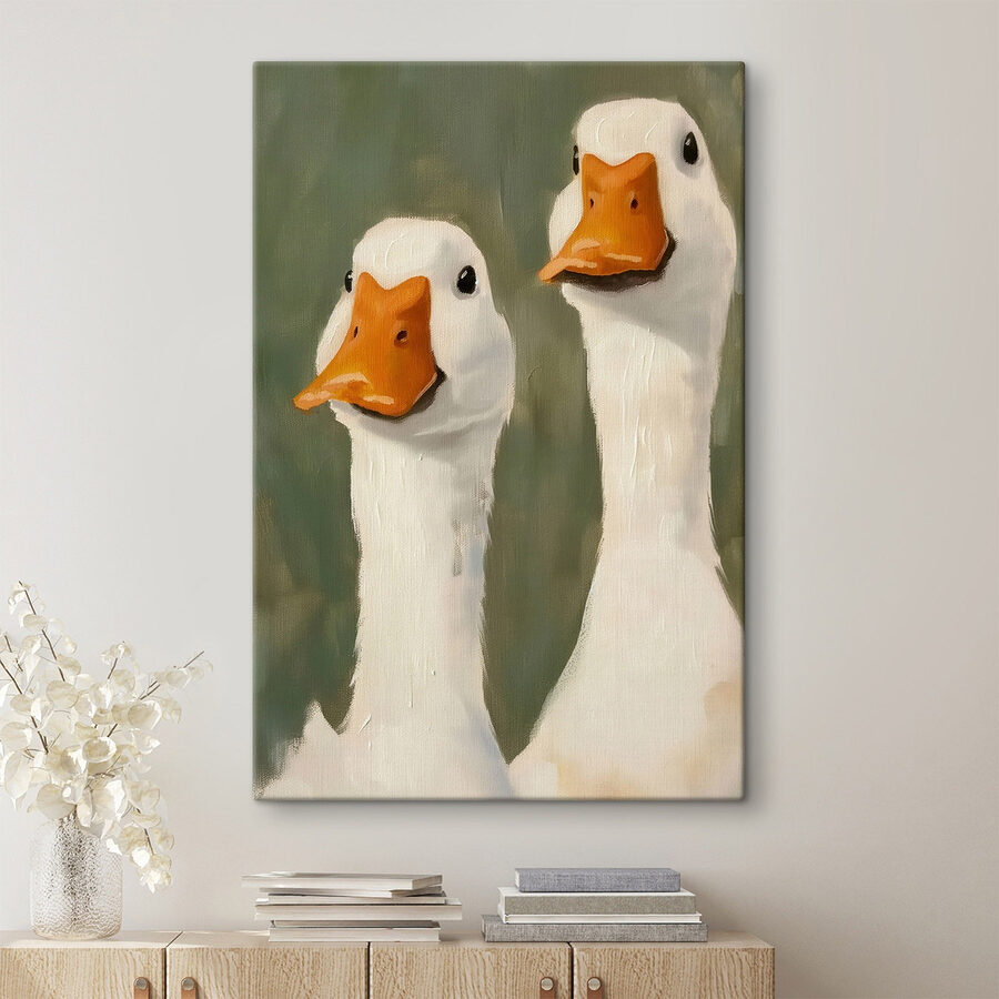 Ajoutez une touche de fantaisie à votre espace avec cette ravissante impression sur toile représentant deux charmants canards blancs – car qui ne voudrait pas avoir des amis à plumes à ses côtés ? Les couleurs vives et les expressions ludiques donnent de la vie à n’importe quel mur, créant une atmosphère joyeuse parfaite pour un salon, une chambre d’enfant ou un coin repas confortable. Imaginez que vous sirotiez un café et que vous discutiez avec ces adorables cancres ; ils auraient probablement plein d’histoires à partager, comme celle de la fois où ils ont failli s’envoler vers le sud pour l’hiver. Ce ne sont pas seulement des œuvres d’art, ce sont des sujets de conversation qui rendront votre maison chaleureuse et accueillante.