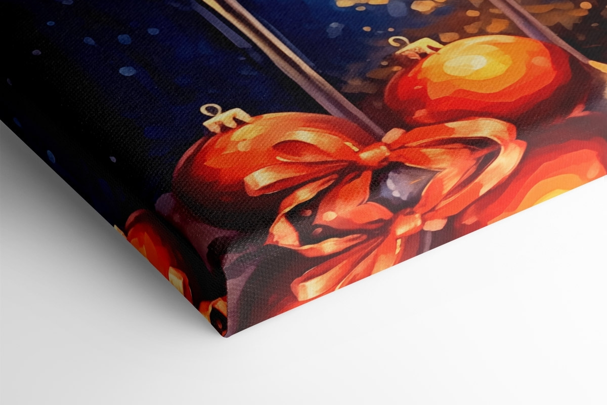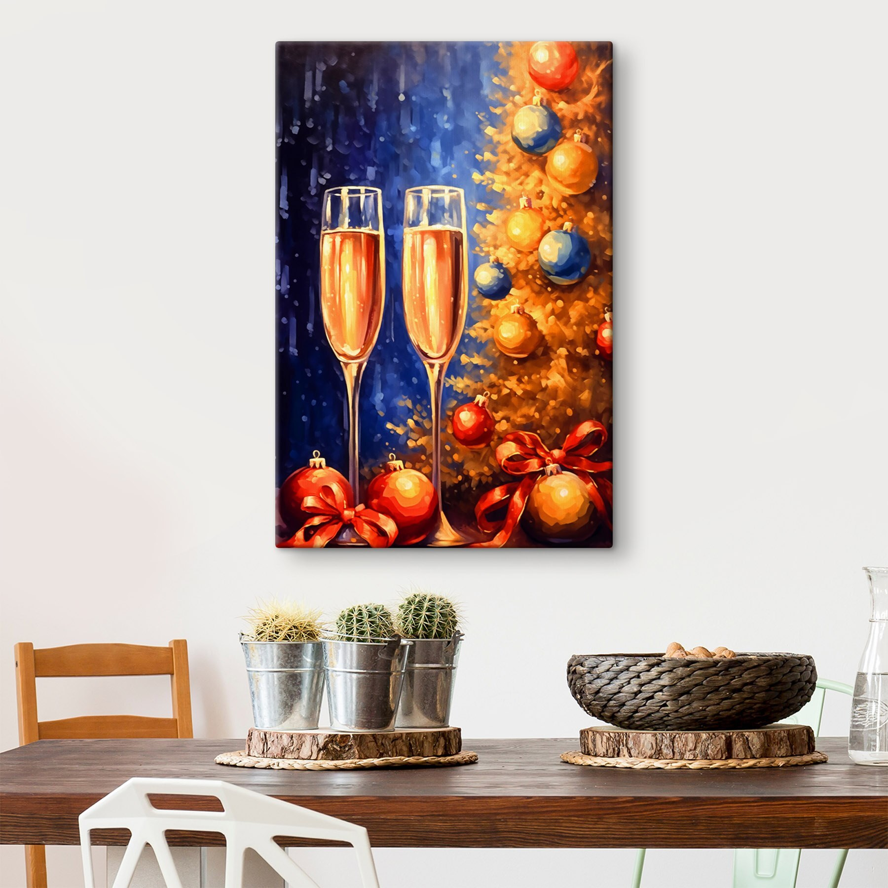 Apportez une touche de gaieté dans n’importe quel espace avec cette délicieuse impression sur toile représentant deux coupes de champagne pétillantes nichées à côté d’un arbre de Noël magnifiquement orné. Elle est parfaite pour les moments où il faut trinquer aux bons moments, et quelle meilleure toile de fond qu’une scène festive remplie d’ornements colorés ? Imaginez ce tableau sur le mur lors de vos réunions de vacances. Des amis qui rient, des verres qui s’entrechoquent et l’arôme des pâtisseries qui flotte dans l’air.