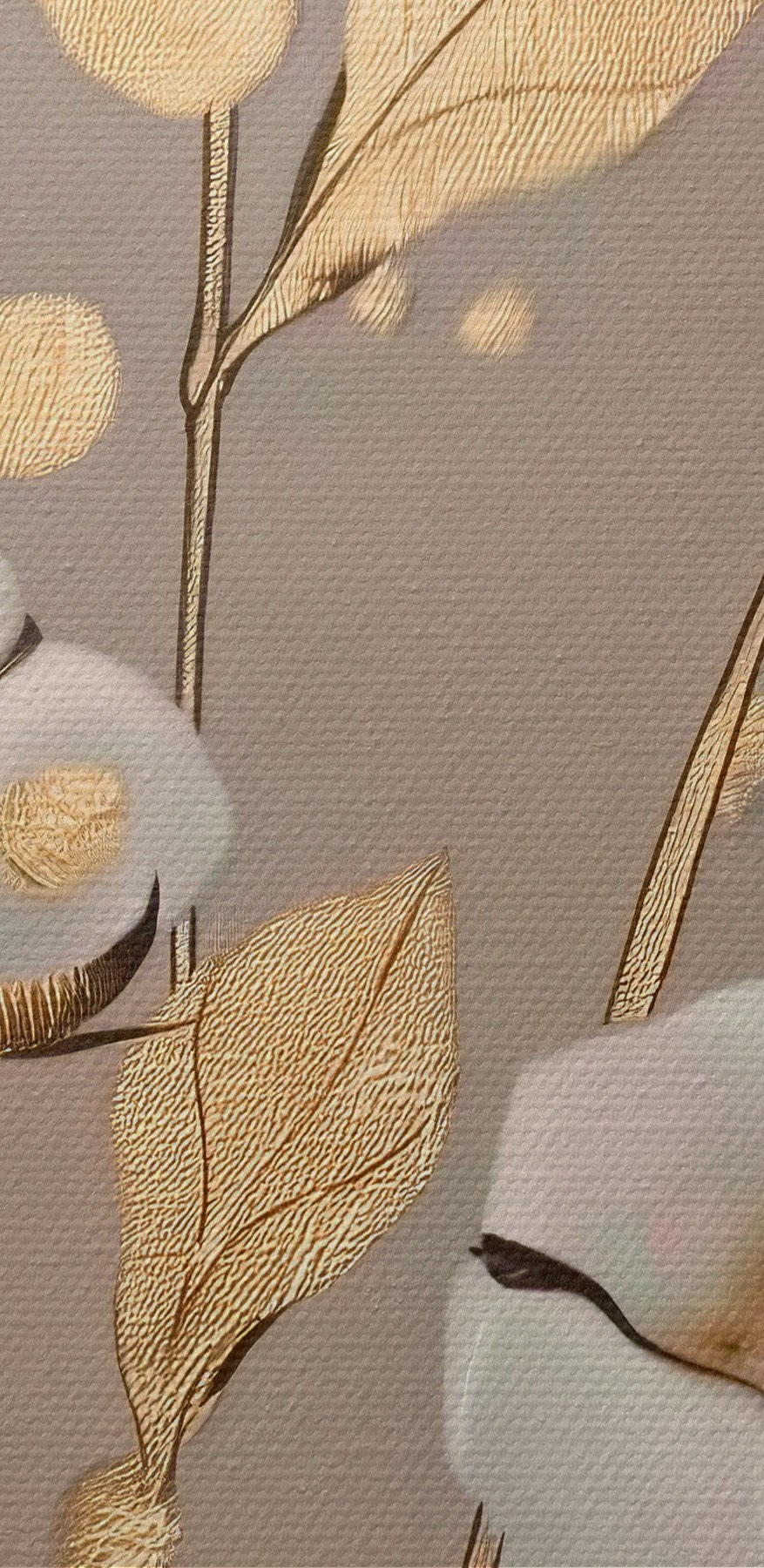 Le revêtement vinylique est une fine couche de PVC appliquée sur un support intissé. La présence de vinyle rend le papier peint résistant aux dommages, permet un nettoyage facile à l’aide d’une éponge humide et donne à la surface une texture gaufrée, ressemblant à un tissu de lin.