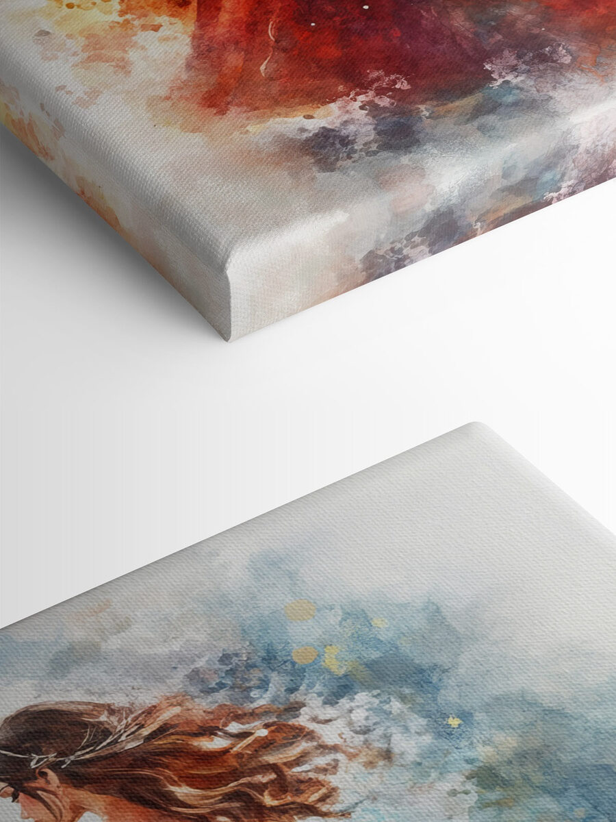 Transformez n’importe quel espace avec cette superbe impression sur toile d’une femme en robe rouge. C’est comme si elle sortait d’un rêve éveillé, capturant ce moment parfait où l’élégance se mêle à la fantaisie. Les teintes vibrantes et les doux traits d’aquarelle créent une sensation de mouvement qui semble presque vivante, ajoutant une touche de drame à vos murs.