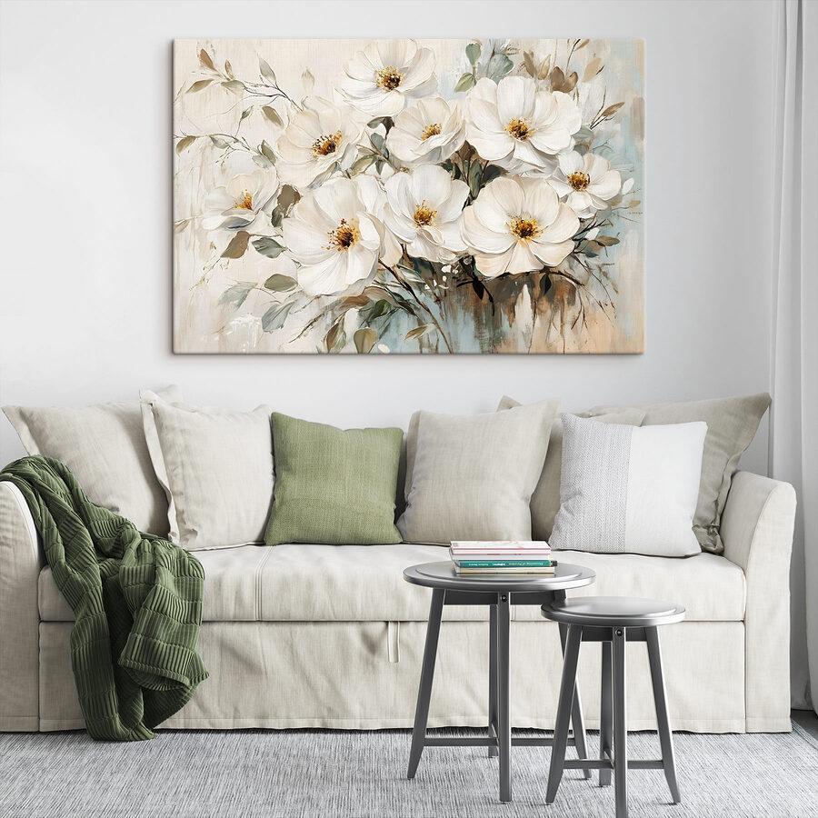 Transformez votre espace avec la douce élégance de cette impression sur toile représentant des fleurs blanches. C’est comme si vous apportiez un jardin serein à l’intérieur – pas besoin d’arroser ! Les fleurs délicates semblent danser sur un fond doux, murmurant une douce promesse de calme et de beauté. Imaginez que vous sirotiez votre café du matin en vous laissant bercer par leur lueur rêveuse ou que vous laissiez les teintes douces inspirer vos pensées créatives. C’est une touche parfaite pour un coin douillet ou un mur qui semble toujours un peu vide. Qui aurait cru que les fleurs pouvaient être aussi magiques ? Elles se contentent de flâner, ce qui rend les choses un peu plus paisibles.