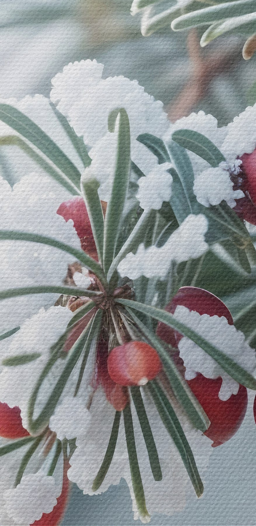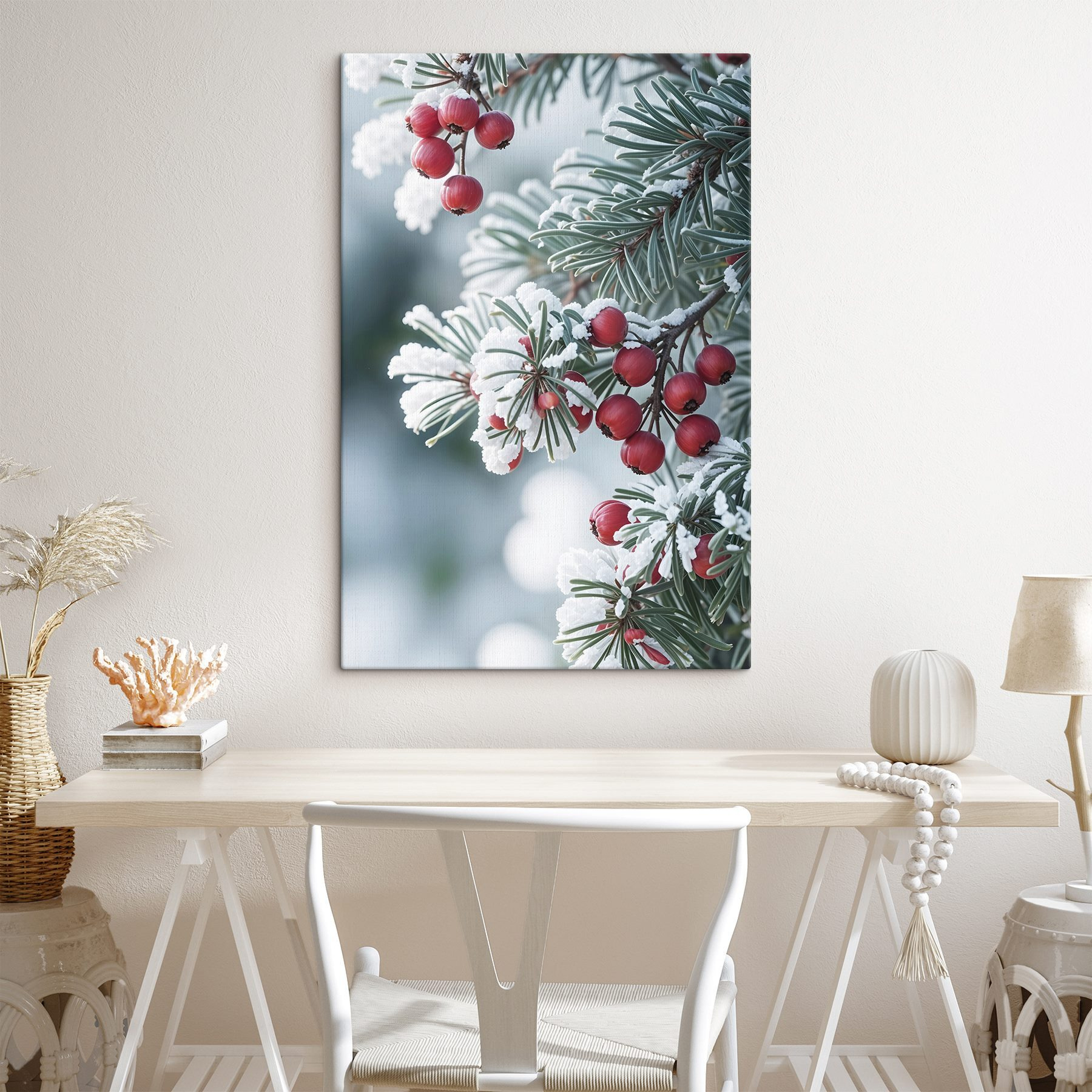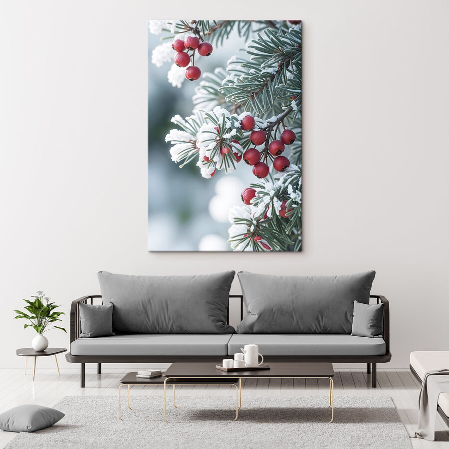 Transformez votre espace en un pays des merveilles hivernales avec les “Imprimés sur toile Baies d’hiver sur branches givrées”. Ces baies d’un rouge éclatant se détachent sur un fond givré, apportant instantanément une ambiance chaleureuse et festive. Imaginez que vous l’accrochiez dans votre salon : tout le monde s’arrêtera pour l’admirer. C’est comme un petit cadeau surprise de la nature enveloppé de givre. De plus, c’est un sujet de conversation parfait !