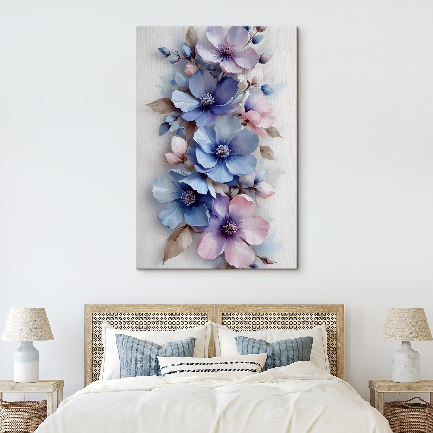 Illuminez n’importe quel espace avec “Delicate Blooms in Soft Hues” (Fleurs délicates dans des tons doux). Cette impression sur toile capture la danse fantaisiste des fleurs dans des bleus et des roses doux, parfaits pour apporter une touche de nature à l’intérieur. Imaginez que vous sirotiez votre café du matin en contemplant cette jolie pièce – c’est comme si vous aviez un vase de fleurs fraîches sans avoir à l’arroser ! Chaque pétale semble chuchoter des mots doux, ajoutant de la tranquillité à une pièce. Qu’il orne le mur d’un salon ou d’une chambre, il ne manquera pas de susciter la joie et la conversation. Qui ne sourirait pas devant ces fleurs ? Parfait pour les amoureux des fleurs ou toute personne ayant besoin d’une touche de beauté.