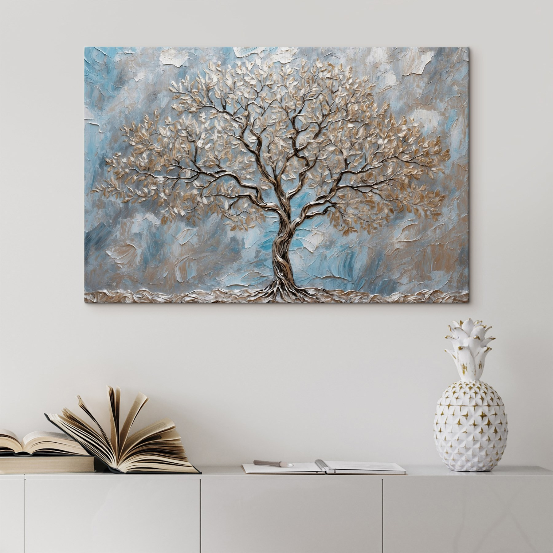 Transformez n’importe quel mur en une escapade sereine avec cette superbe impression sur toile d’un arbre majestueux. Les bleus apaisants et les textures riches évoquent les brises légères et les moments de tranquillité passés entre les branches. Imaginez que vous entrez dans une pièce après une longue journée et que vous êtes accueilli par cette œuvre – c’est comme des mini-vacances sans quitter la maison !
