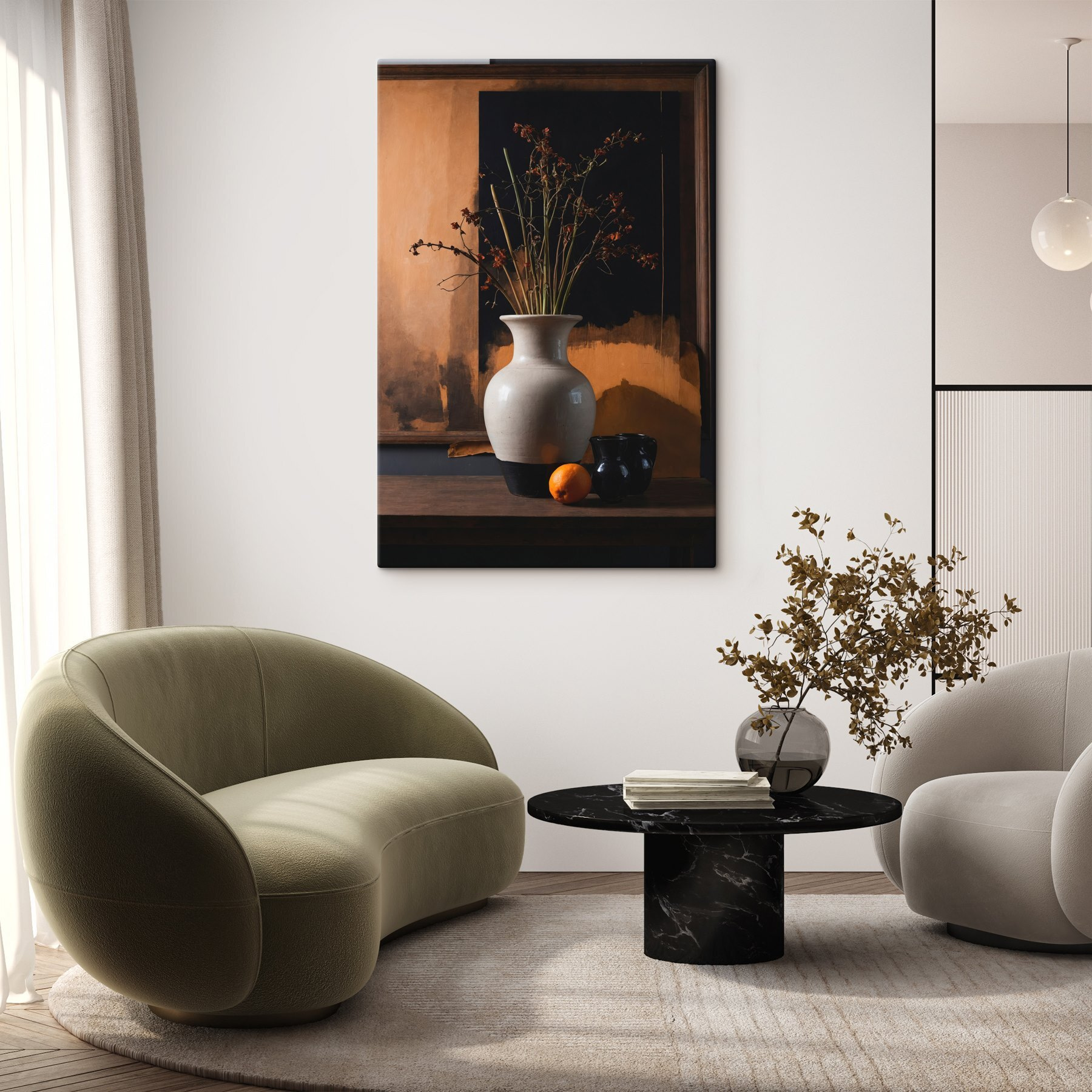 Dites bonjour à une ambiance chaleureuse avec cette superbe impression sur toile – “Vase avec fleurs séchées et oranges”. C’est comme l’étreinte chaleureuse d’un après-midi ensoleillé, apportant une touche de nature dans votre salon. Imaginez : un vase élégant rempli de magnifiques fleurs séchées, parfaitement complété par une orange juteuse qui se prélasse à proximité. Il donne envie de siroter une boisson rafraîchissante tout en rêvant à des week-ends de farniente. Les couleurs riches et les textures accueillantes donneront vie aux murs ! Ce n’est pas seulement un décor, c’est aussi un sujet de conversation, une petite œuvre d’art qui murmure des histoires, sans dire un mot. Parfait pour ceux qui aiment un peu de charme rustique mélangé à un flair moderne. Votre espace le mérite !
