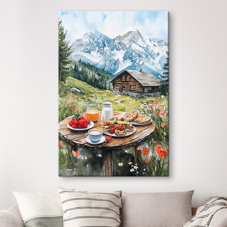 Transformez n’importe quel espace avec cette délicieuse impression sur toile, qui représente une table sereine garnie de délicieuses bouchées et de boissons fraîches sur fond de montagnes à couper le souffle. Imaginez le soleil filtrant à travers les arbres, l’odeur des fleurs sauvages se mêlant à l’arôme du café. C’est comme si vous invitiez un petit coin de paradis dans votre maison. Parfaite pour les cuisines ou les salles à manger, cette pièce suscite la joie – peut-être même inspirera-t-elle des brunchs ou des matinées paresseuses passées à siroter du thé. Qui ne ressentirait pas un sentiment de calme et de chaleur en regardant cette scène pittoresque ? C’est une question d’ambiance chaleureuse !