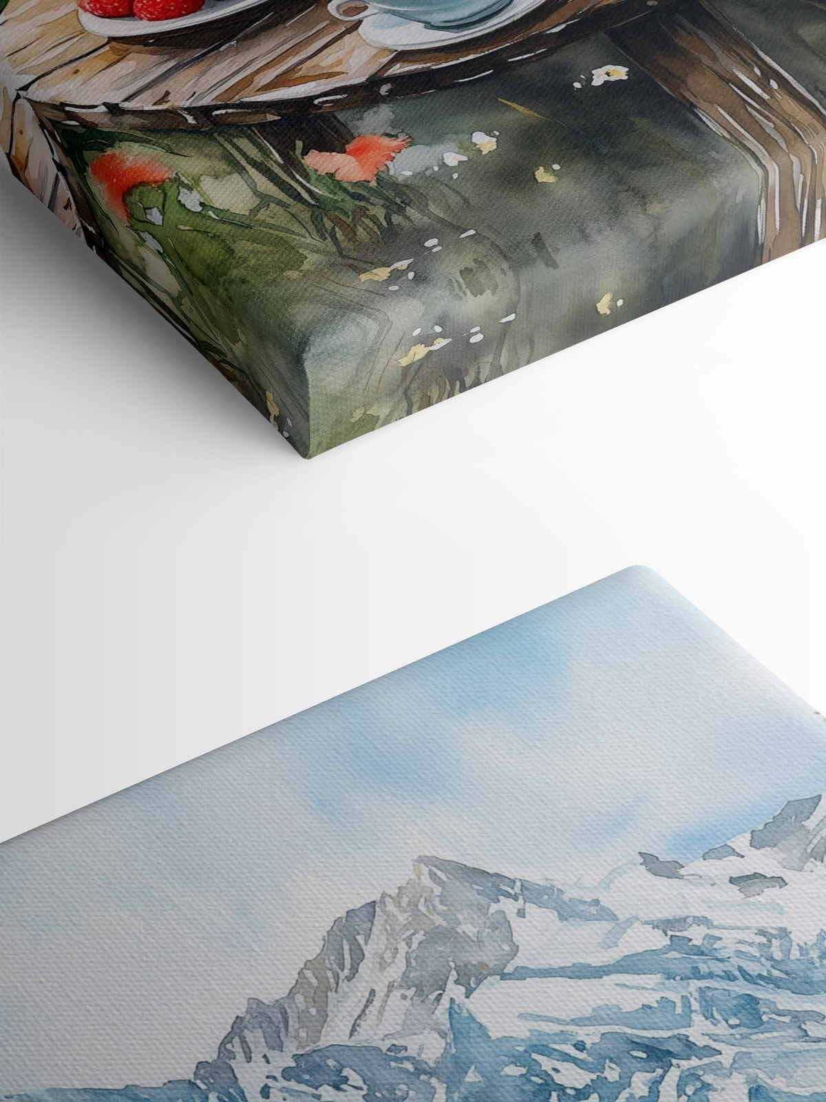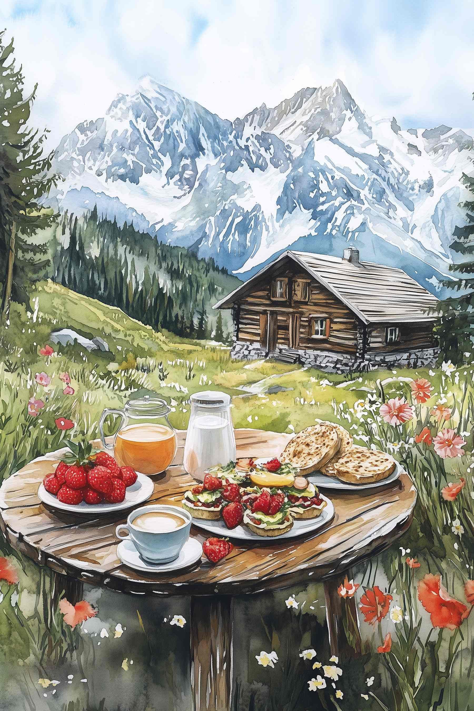 Transformez n’importe quel espace avec cette délicieuse impression sur toile, qui représente une table sereine garnie de délicieuses bouchées et de boissons fraîches sur fond de montagnes à couper le souffle. Imaginez le soleil filtrant à travers les arbres, l’odeur des fleurs sauvages se mêlant à l’arôme du café. C’est comme si vous invitiez un petit coin de paradis dans votre maison. Parfaite pour les cuisines ou les salles à manger, cette pièce suscite la joie – peut-être même inspirera-t-elle des brunchs ou des matinées paresseuses passées à siroter du thé. Qui ne ressentirait pas un sentiment de calme et de chaleur en regardant cette scène pittoresque ? C’est une question d’ambiance chaleureuse !