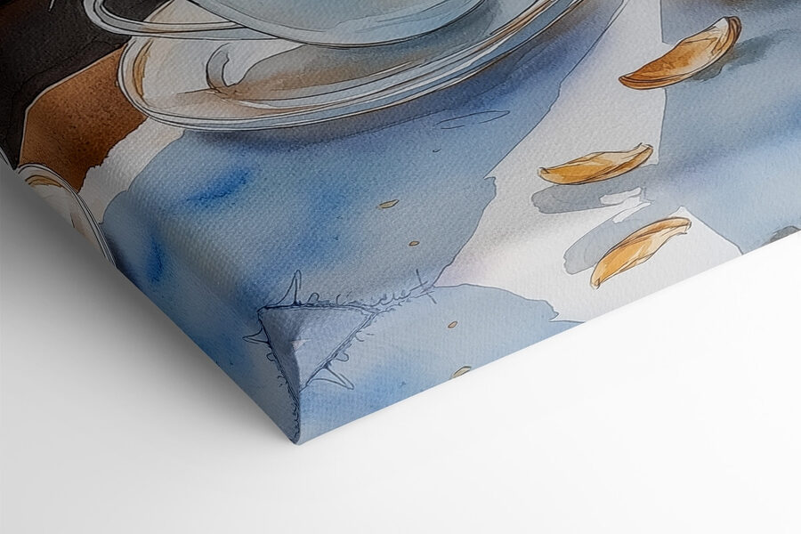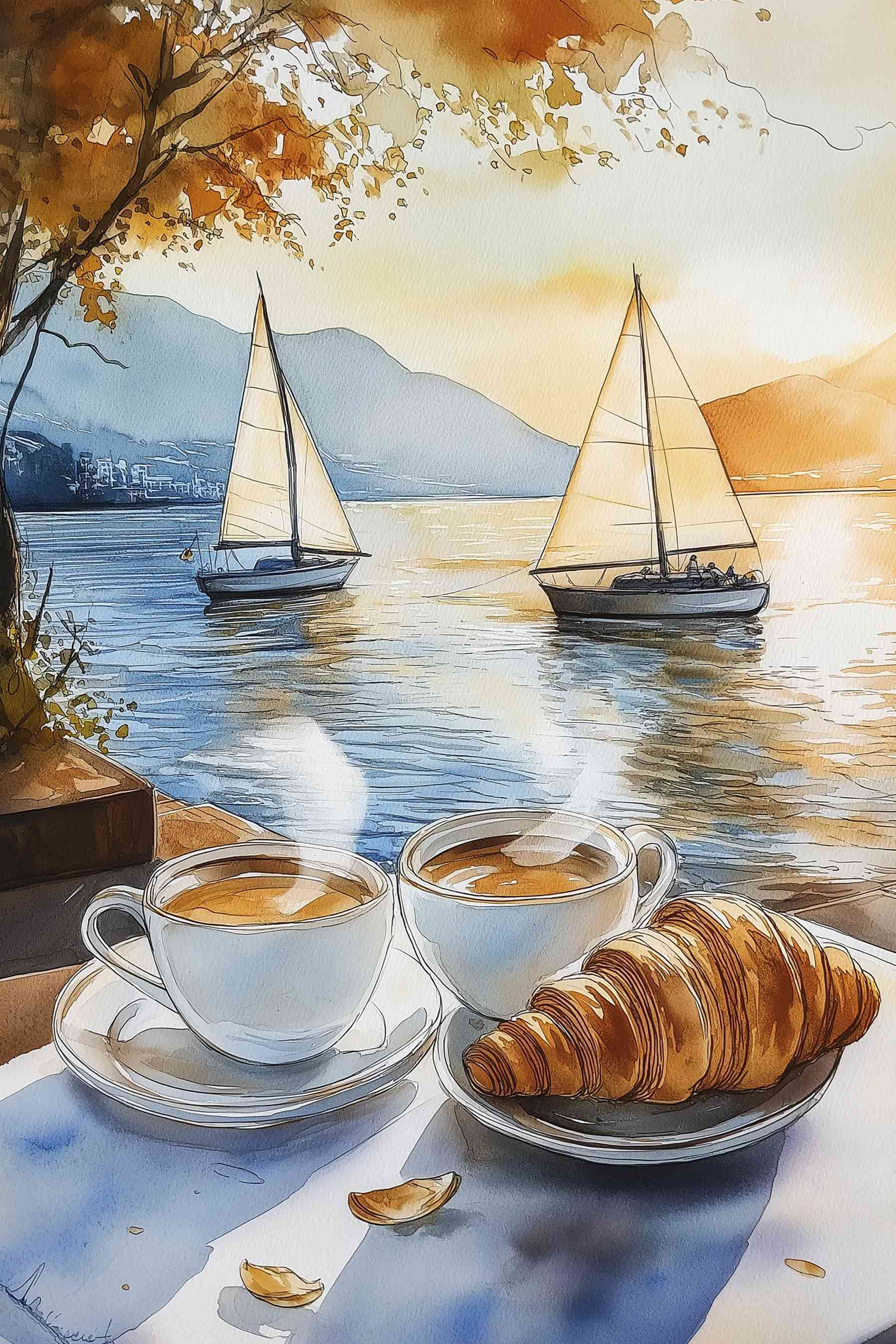 Egayez vos murs avec cette ravissante impression sur toile représentant deux tasses de café fumantes et un croissant feuilleté, le tout sur fond de scène paisible au bord de l’eau. Imaginez que vous commencez votre journée ici – la lumière du soleil dansant sur l’eau et l’arôme réconfortant du café dans l’air. C’est le genre d’ambiance chaleureuse qui vous donne envie de vous blottir dans un bon livre ou de partager des rires avec un ami. Parfaite pour les cuisines ou les coins repas, cette œuvre d’art invite à la chaleur et à la conversation. De plus, qui n’aime pas s’inspirer d’un petit croissant ? Faites entrer le bonheur du café dans votre maison !