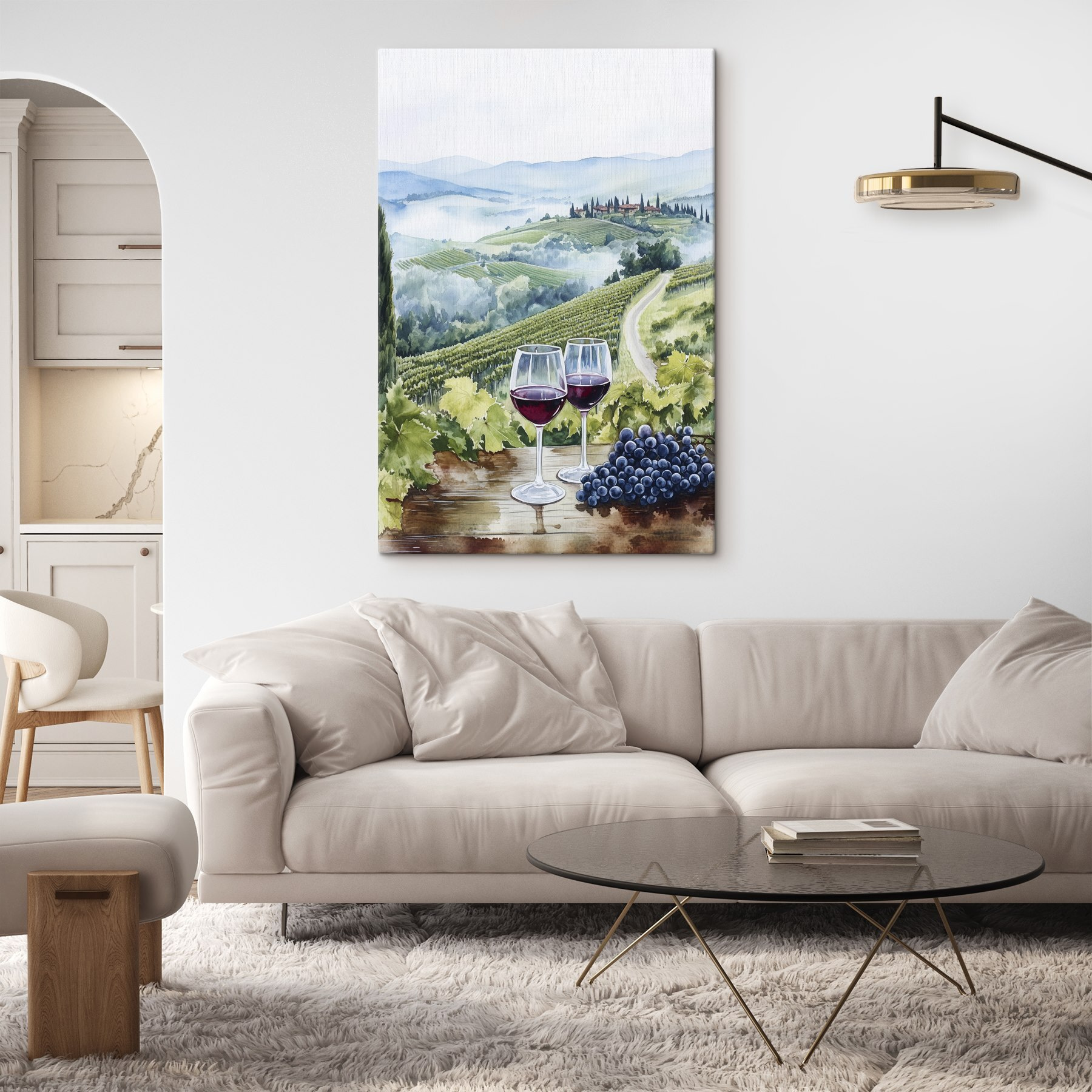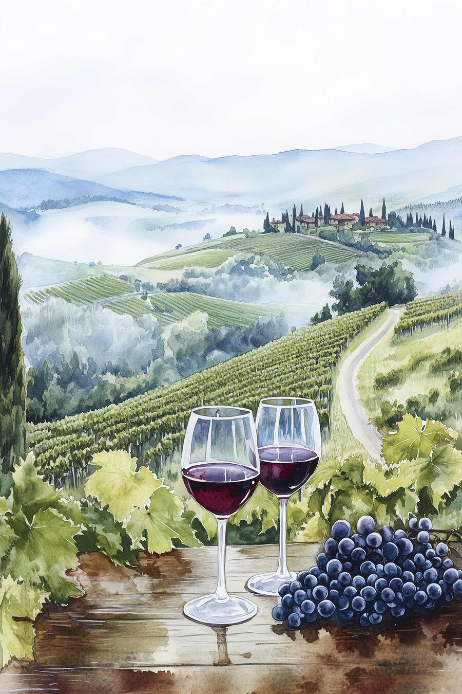 Transformez votre espace avec cette charmante aquarelle représentant des verres à vin, des raisins dodus et des collines ondulantes qui semblent murmurer des histoires de journées chaudes et ensoleillées. Imaginez des soirées douillettes entre amis, des rires se mêlant au tintement des verres. Ces riches teintes de rouge et de vert ressortent magnifiquement, invitant instantanément à une touche d’élégance et de détente. Imaginez cette toile suspendue dans une salle à manger ou une cuisine, rehaussant sans effort votre décor. C’est comme si vous apportiez un peu de vignoble dans votre maison – ajoutez une bouteille ou deux et laissez couler le bon temps !