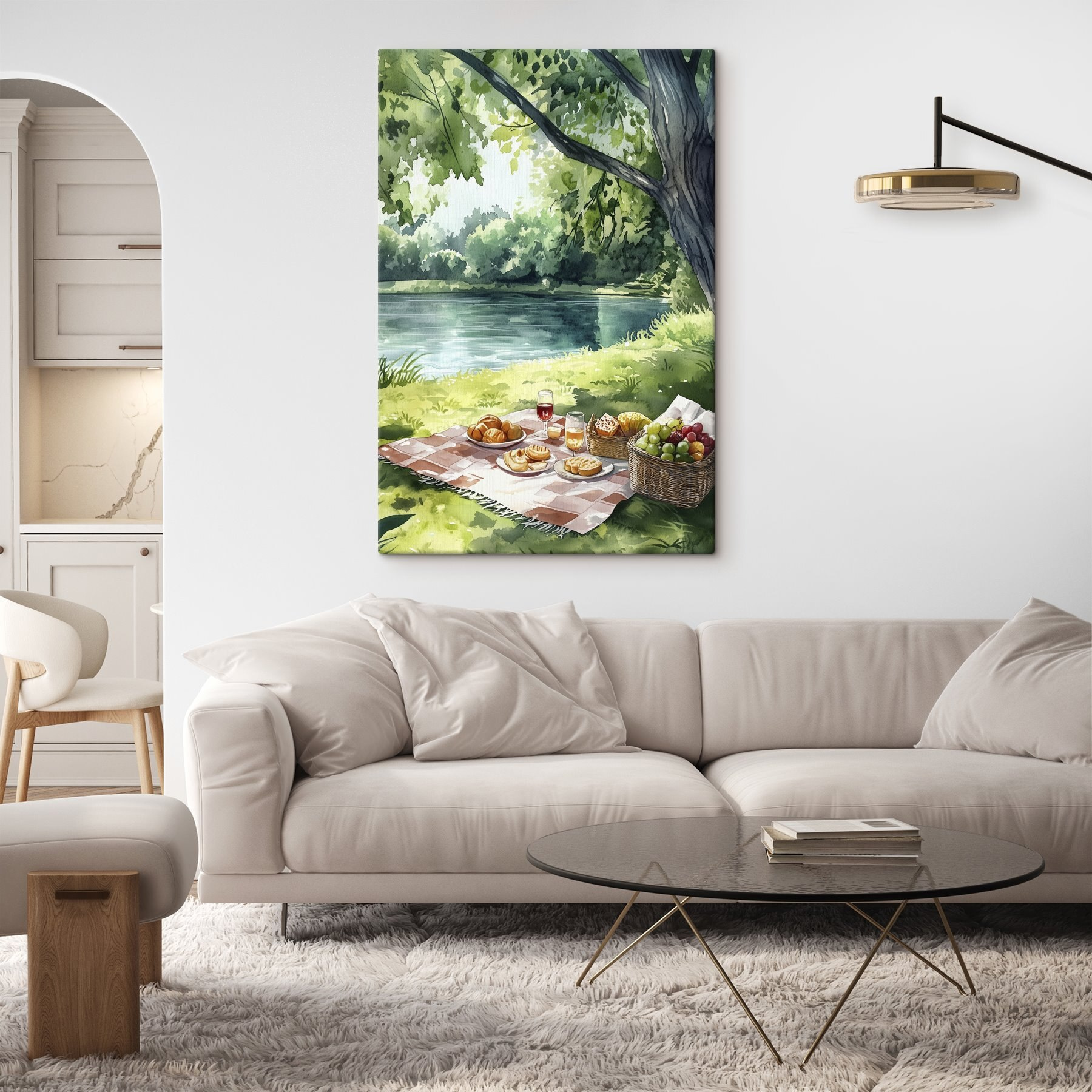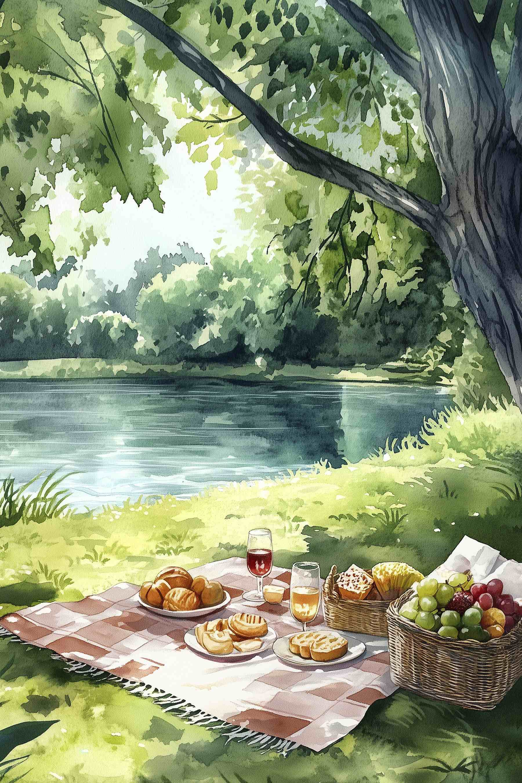 Imaginez cette jolie scène égayer votre mur. Un pique-nique confortable au bord d’un lac, accompagné de délicieuses friandises, vous donne l’impression de pouvoir goûter à ces pâtisseries au beurre. L’aquarelle douce capture les verts luxuriants et l’eau sereine, invitant à des pensées d’après-midi chaudes passées en plein air avec des amis. Il est parfait pour susciter des conversations ou simplement pour rêvasser pendant le café de l’après-midi. Cette pièce apporte une touche de nature à l’intérieur, équilibrant sans effort le charme et la nostalgie. Parfait pour tout espace qui a besoin d’une touche de joie !