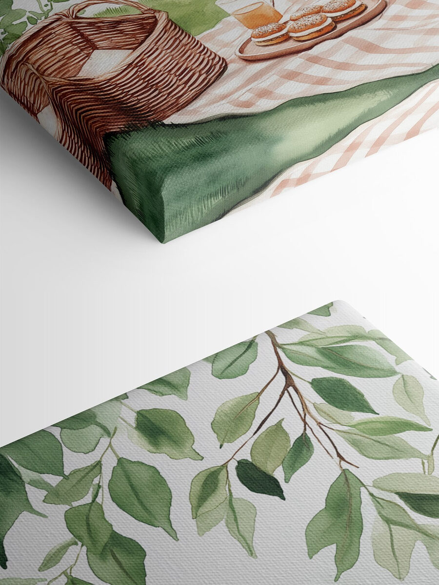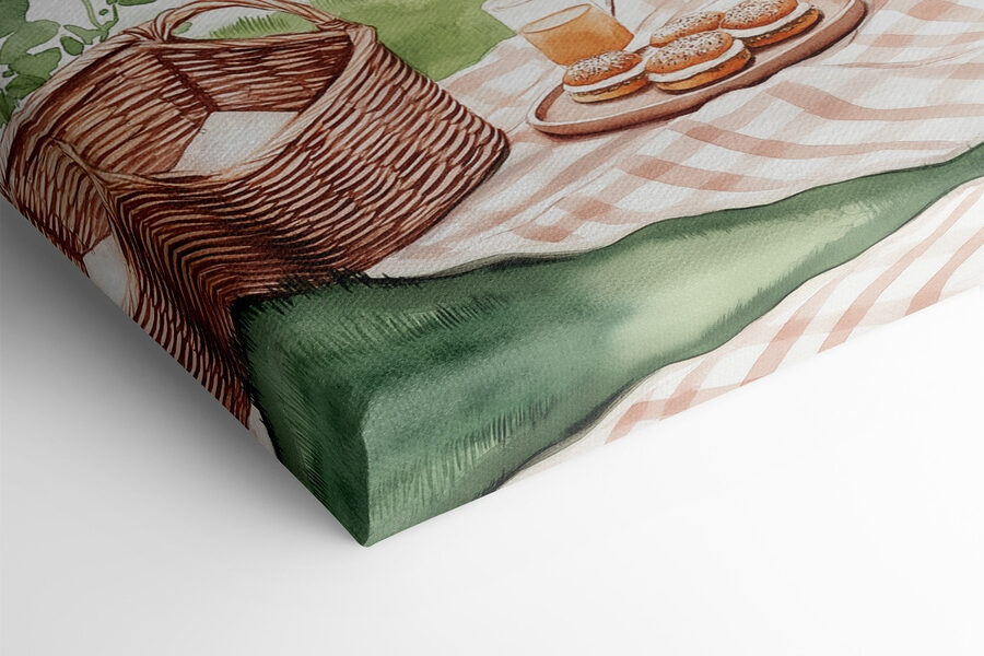 Transformez votre espace avec cette charmante impression sur toile à l’aquarelle, représentant une scène de pique-nique délicieuse qui ne demande qu’à se dérouler pendant les après-midi de farniente. Imaginez une couverture confortable étalée au bord d’un lac tranquille, avec de délicieuses friandises et des boissons rafraîchissantes nichées dans de jolis paniers. Il ne s’agit pas seulement d’une œuvre d’art, mais d’une petite tranche de sérénité. Imaginez les rires des amis et le doux bruissement des feuilles pendant que vous sirotez une limonade. Que ce soit dans la cuisine, le salon ou un coin lecture paisible, cette œuvre murmure des histoires de journées chaudes et de doux souvenirs. Parfait pour tous ceux qui aiment la nature et le charme !