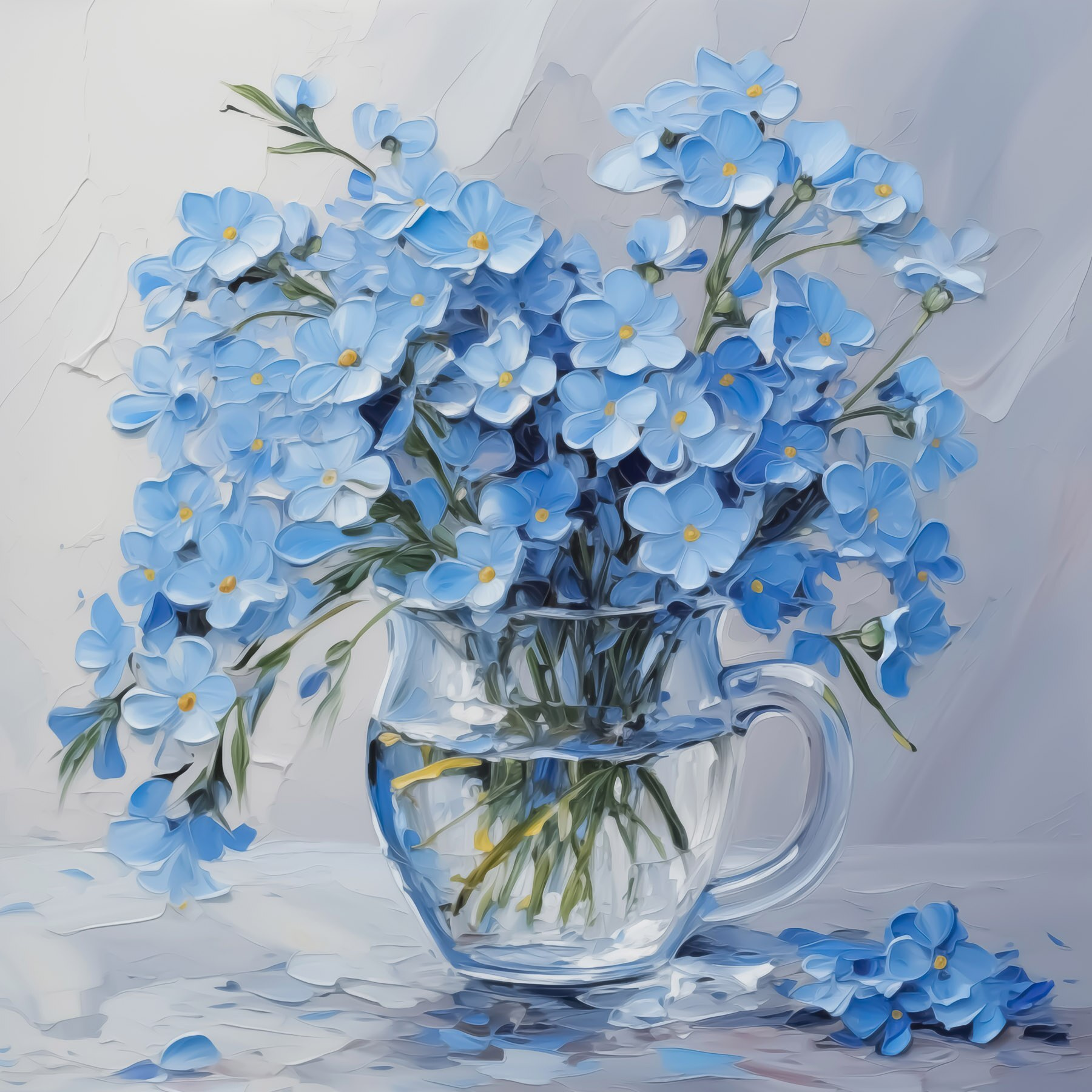 Imaginez que vous entriez dans une pièce et que vous soyez accueilli par une toile imprimée représentant des fleurs bleues dans un vase en verre. C’est comme si vous aviez un morceau de nature sur votre mur, qui vous chuchote des mots doux sur le printemps, même au cœur de l’hiver. Les couleurs sont éclatantes et les pétales délicats semblent danser. Cette œuvre d’art ne se contente pas de rester là ; elle vous invite à entrer, rendant votre maison chaleureuse et accueillante. Imaginez des soirées douillettes à siroter un thé, avec cette jolie scène qui illumine l’espace. Ce n’est pas seulement un décor ; c’est un petit stimulant du bonheur, un rappel de la beauté dans la vie de tous les jours. Ornez les murs d’une touche de couleur – qui n’en voudrait pas ?