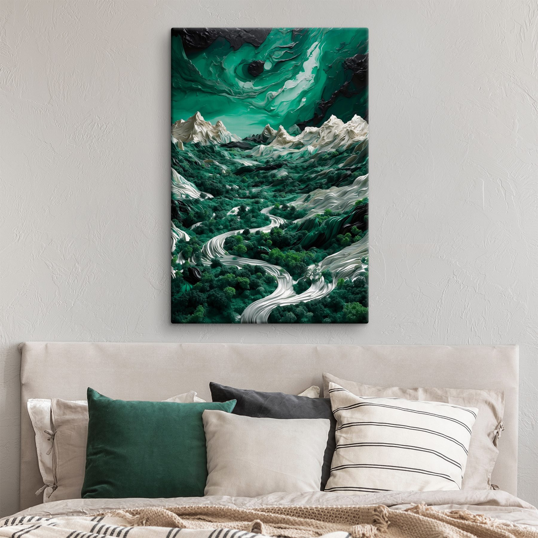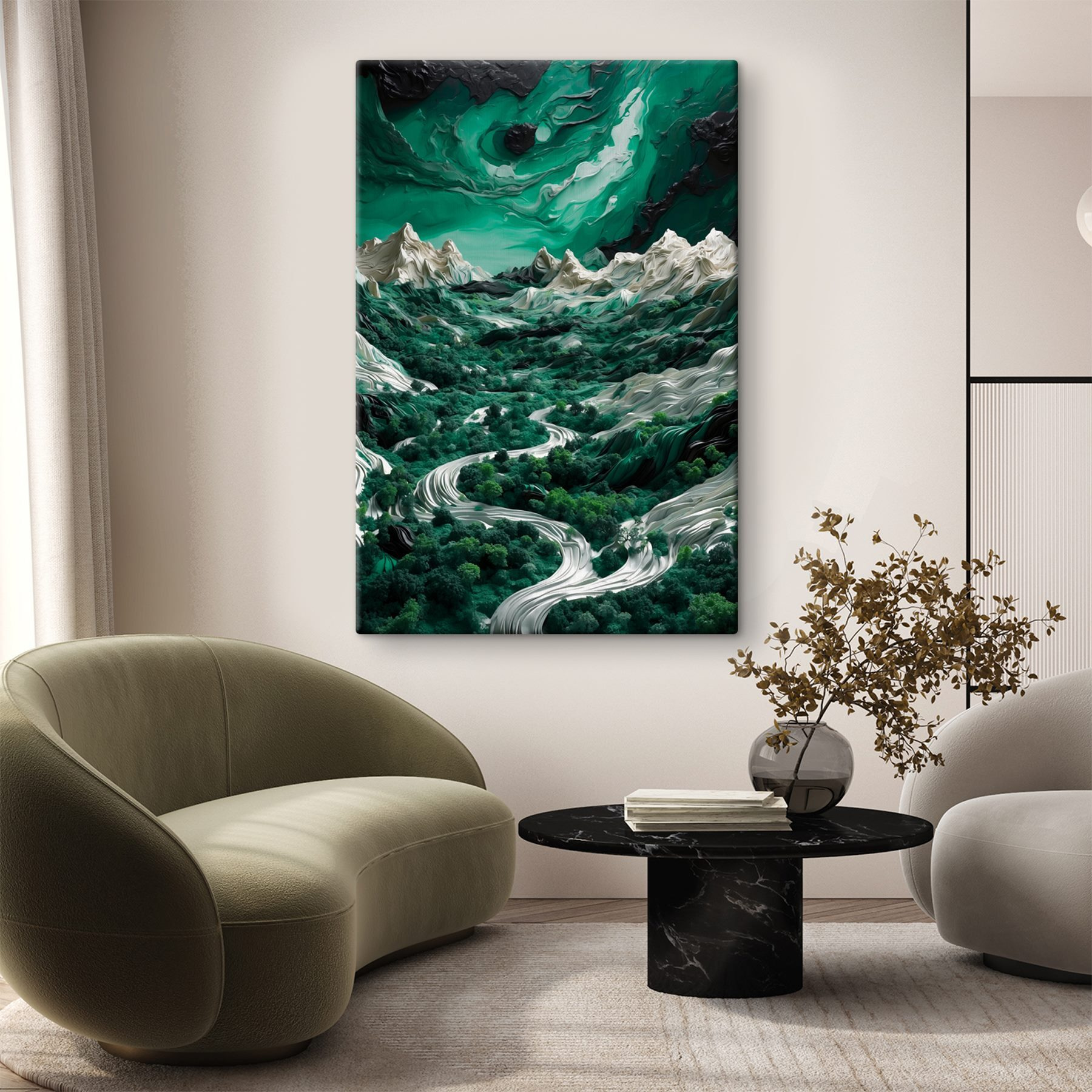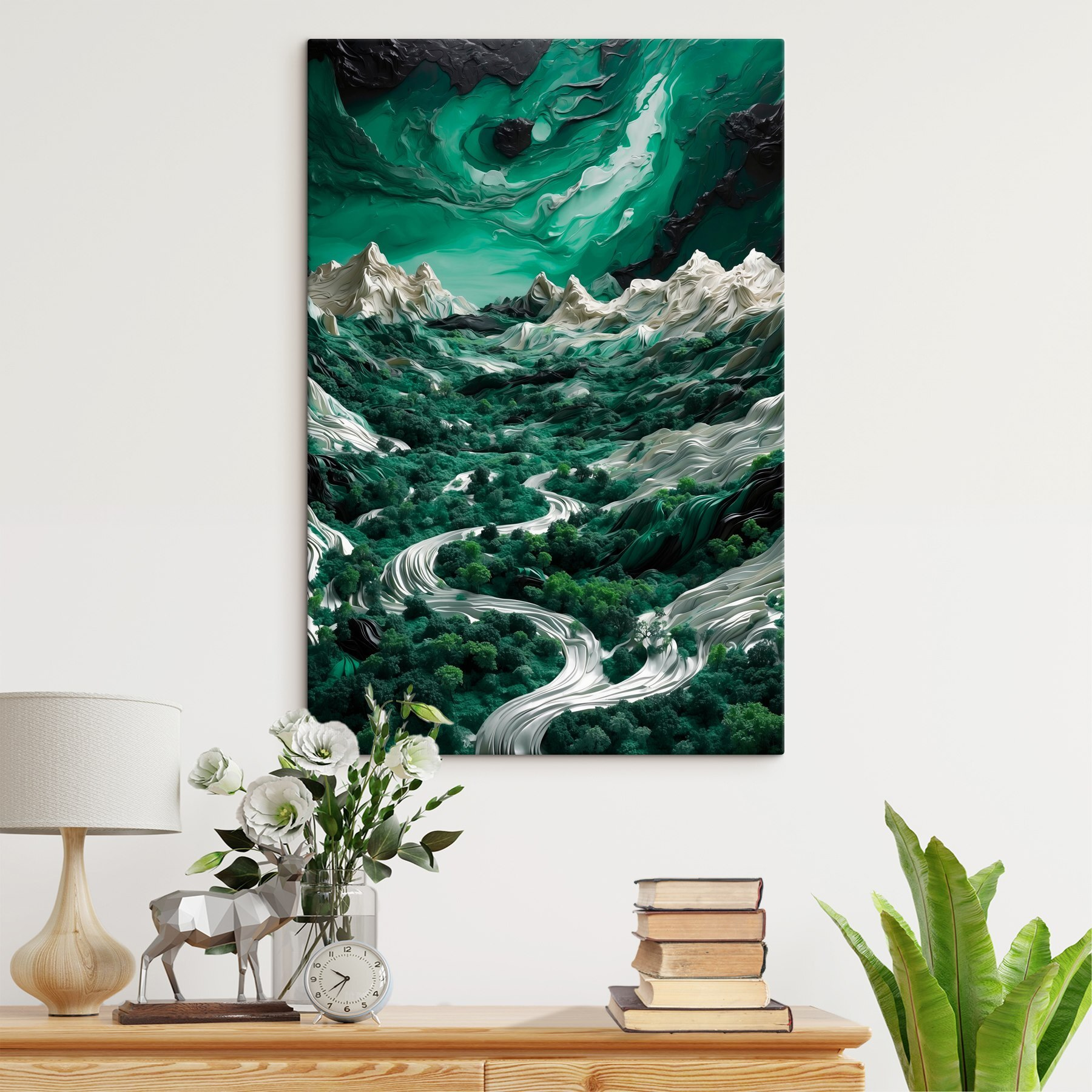 Transformez n’importe quel mur en un lieu d’évasion sereine grâce à cette superbe “toile imprimée Paysage avec arbres et montagnes”. Imaginez : une douce brise fait bruisser des arbres d’un vert éclatant, tandis que des montagnes majestueuses se dressent sous un ciel de rêve. Cette œuvre d’art ne se contente pas d’être jolie ; elle vous invite à rêvasser en vous promenant dans une forêt luxuriante. Imaginez-vous en train de vous blottir dans un livre ou de siroter un café, en sentant le calme de la nature vous envahir. De plus, il est parfait pour n’importe quel espace, qu’il s’agisse du salon, du bureau ou d’un coin douillet que vous avez besoin d’embellir. Les amoureux de la nature auront le cœur qui bat la chamade. C’est comme si vous faisiez entrer le calme de l’extérieur à l’intérieur, sans les insectes gênants !