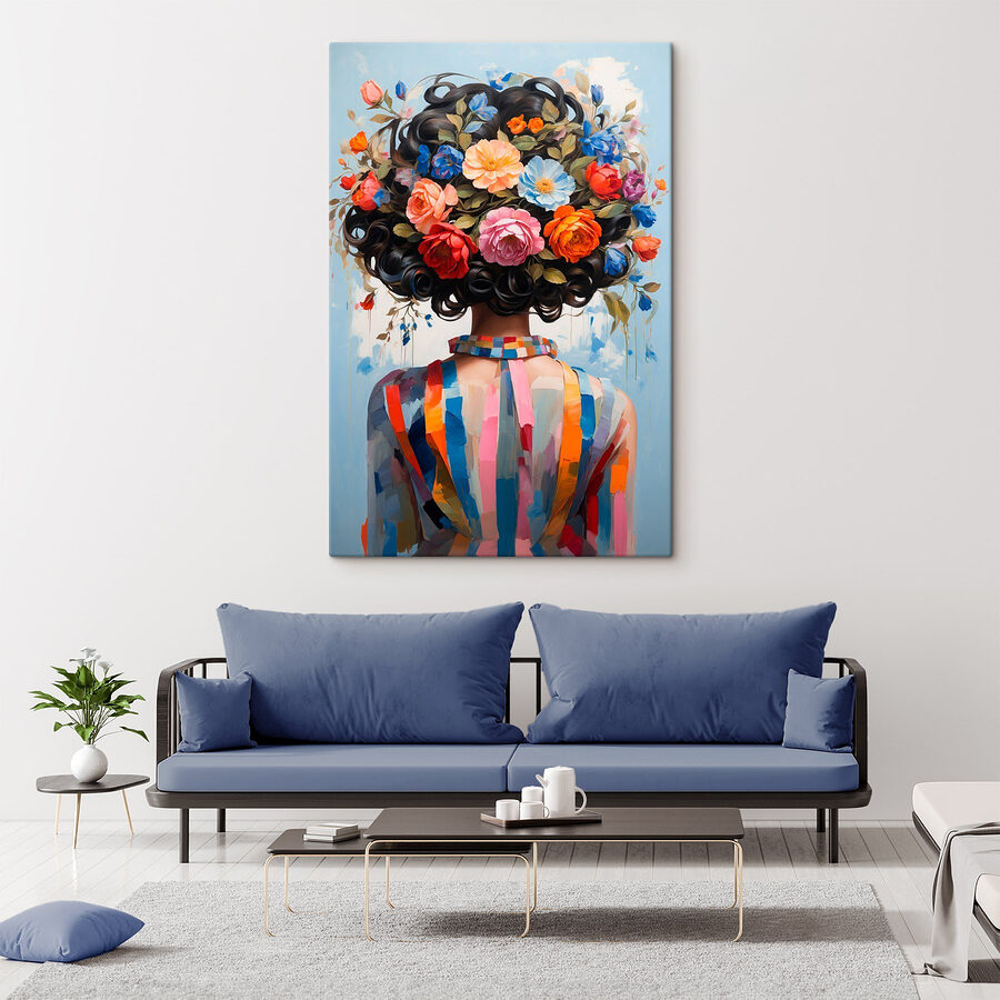 Illuminez n’importe quel espace avec cette superbe impression sur toile représentant une femme ornée d’un bouquet de fleurs vibrantes. C’est comme si vous faisiez entrer une bouffée de printemps dans votre maison tout au long de l’année. Imaginez cette beauté accrochée à votre mur – les gens s’arrêteront pour l’admirer, et vous demanderont peut-être même votre secret pour trouver une décoration aussi unique. Les couleurs sont vives, presque dansantes, et la couronne florale ? Elle est parfaite pour rêver aux pique-niques d’été. Chaque coup d’œil est un doux rappel à s’arrêter et à sentir les roses (au sens figuré, bien sûr) et à ajouter un peu de joie à la vie quotidienne. Qu’il s’agisse d’un salon ou d’un coin douillet, cet imprimé a le don de tisser de la chaleur et du charme dans n’importe quel coin. Vos murs méritent un peu d’éclat, vous ne trouvez pas ?