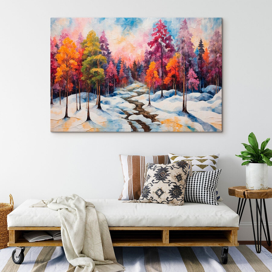 Imaginez que vous sirotiez un chocolat chaud en contemplant cette toile de forêt enneigée de rêve. C’est comme un câlin douillet pour votre mur, vous ne trouvez pas ? Cette œuvre vibrante présente des arbres aux couleurs automnales flamboyantes contrastant avec un manteau de neige d’une blancheur éclatante – un véritable coup de cœur ! Un coup d’œil à ce doux ruisseau qui serpente à travers le paysage enneigé, et vous pourriez ressentir un petit frisson, même pendant les journées les plus chaudes. Parfait pour apporter une touche de nature à l’intérieur, il crée une ambiance sereine sans dire un mot. Que vous vous détendiez après une longue journée ou que vous organisiez une réunion impromptue, cette œuvre d’art est prête à voler la vedette et à susciter la conversation.