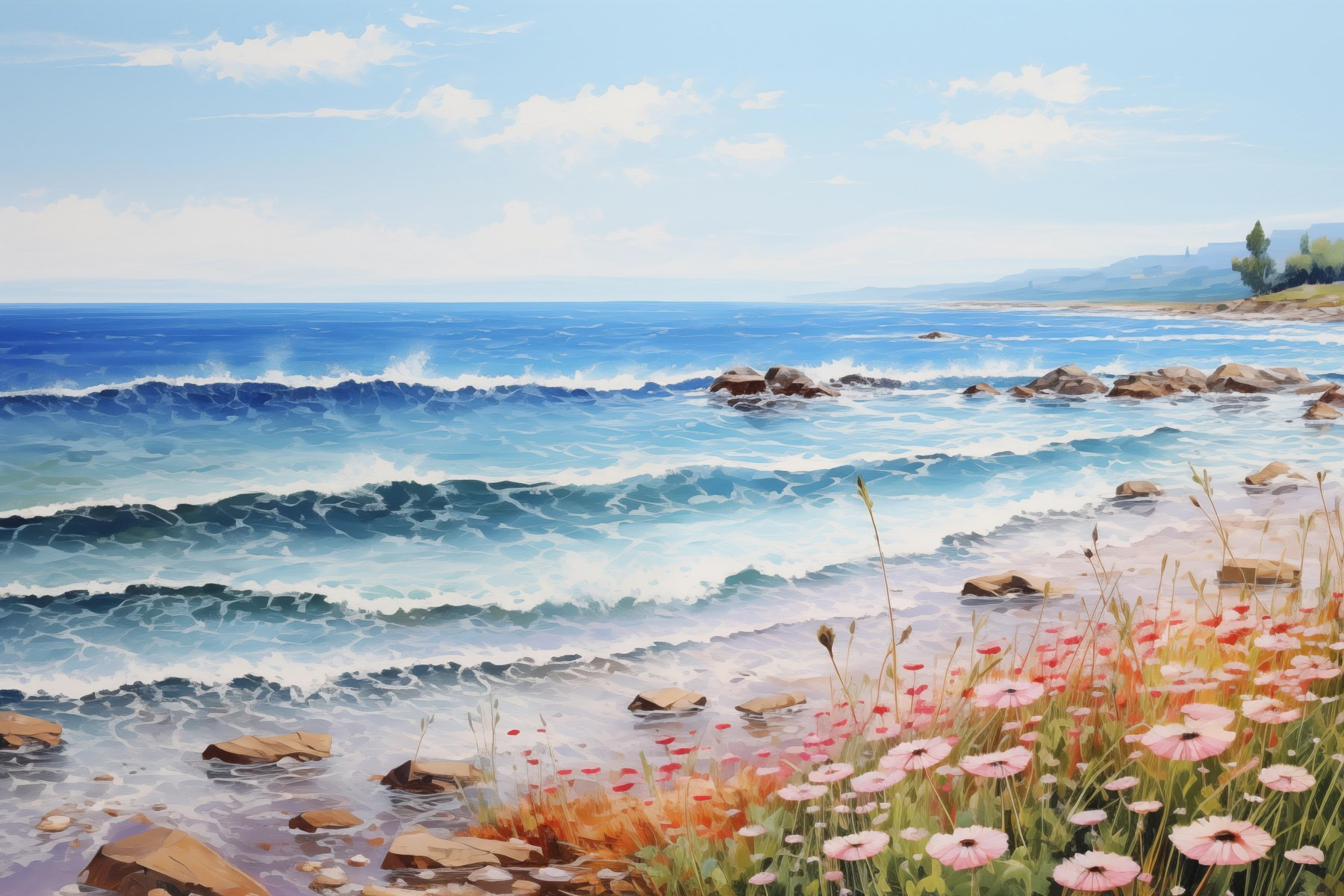 Transformez n’importe quel mur en un coin de paradis grâce à cette superbe toile imprimée représentant une scène de plage paisible. Imaginez le doux bruit des vagues qui s’échouent sur le rivage, tandis que des fleurs vibrantes se balancent au gré d’une brise légère – ah, le bonheur à l’état pur ! Les bleus riches de l’océan, mélangés aux roses délicats des fleurs, créent une harmonie parfaite qui apaise l’âme. C’est comme des mini-vacances dans votre salon. C’est un sujet de conversation idéal, ou tout simplement une petite évasion d’une journée bien remplie. Cette œuvre d’art invite à la chaleur et à la paix, apportant la beauté de la nature à l’intérieur, là où elle doit être.